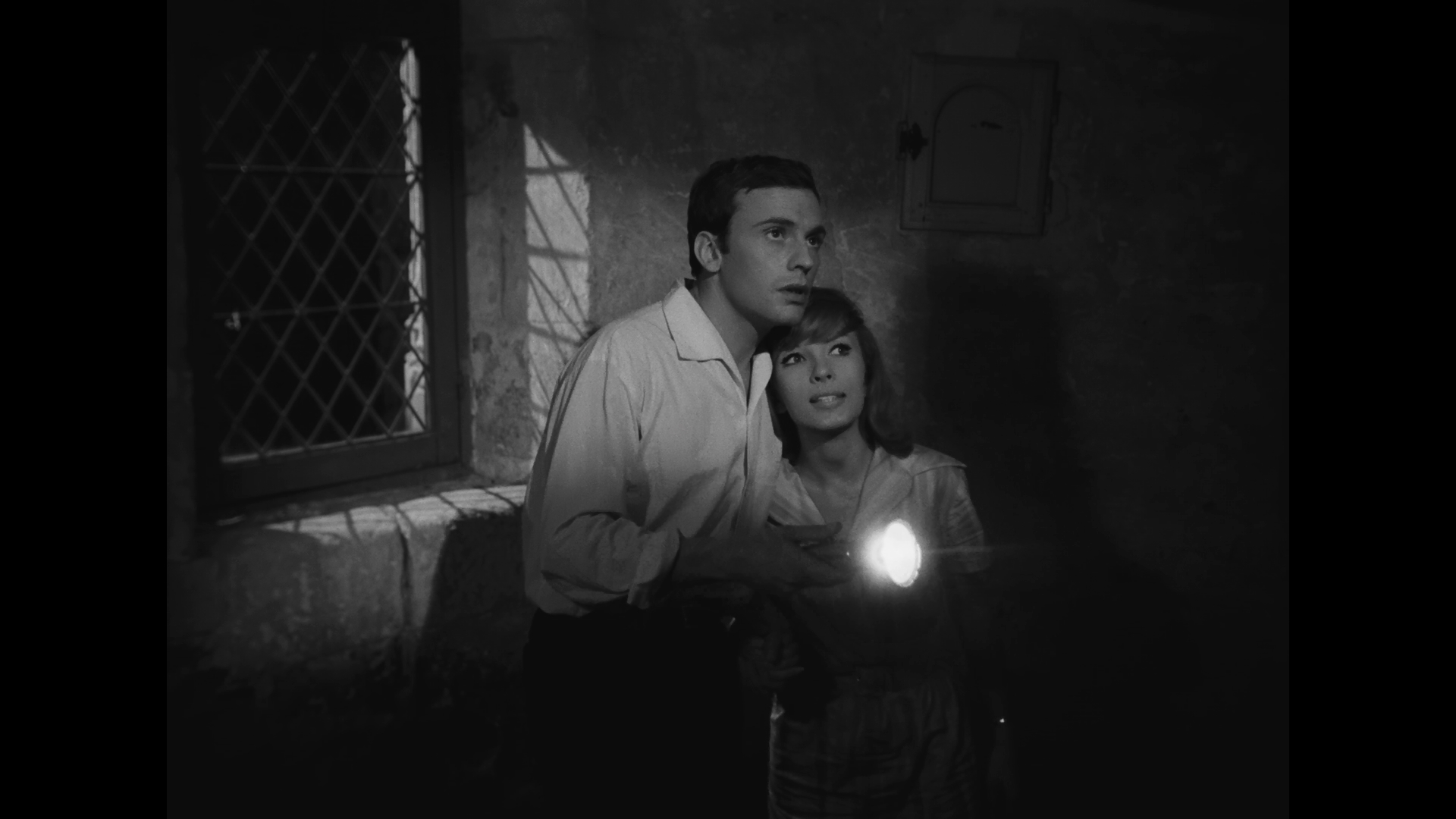As expected, the Arrow release looks gorgeous with perfect blacks, detail, you name it. There's really nothing to quibble about here at all, and the DTS-HD MA French soundtrack with optional English subtitles is also a great way to savor that lovely score. The first pressing laso comes with a liner notes booklet featuring an essay by Chris Fujiwara. Extras include the French trailer and a really amazing 1960 episode of the French TV documentary series Le Courrier du Cinema (27m14s) with Franju and most of the primary cast chatting in the castle location ("This is a film about atmosphere"), often in very amusing and familiar spots. Hilariously, the lively Brasseur gets far more screen time here than he does in the actual film!