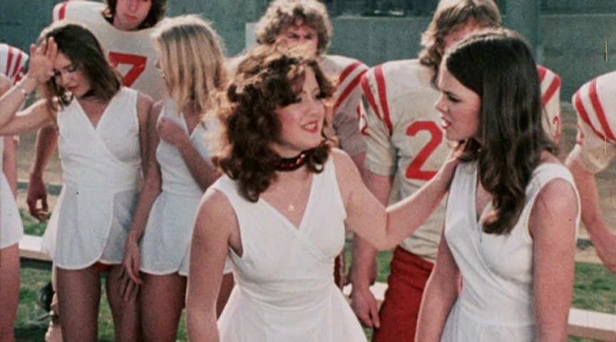 "At the end of time on a planet in a distant galaxy," mankind has completely wiped itself out -- except for a single "girl child" preserved by an "all-powerful race of thinking machines." What this means is that a platinum-blonde, mentally vacant vixen (Hustler centerfold Klark) gets pulled out of a protoplasmic duplicator by a housekeeping robot with a British accent. Our full-grown, barely clad test tube baby doesn't understand the concept of sex, so the robot goes into its faulty memory banks to explain it all. Thus we start an anthology of four stories, kicking off with a nutty retelling of the story of the Garden of Eden set at a '50s high school where Adam (Wise) and Eve (Louise) decide to "go parking." Their idyll is interrupted by a stogie-chomping serpent (Phillips), who urges them to taste a forbidden pineapple so they can get busy for his amusement. Then we get a B&W silent Rocky Horror pastiche as innocent travelers Prissy and Percy (Anderson and Bloom) end up at a spooky castle on a dark stormy night. Count Dracula (Harden) and his assistant (someone credited as "Tricky Dicky" wearing a Richard Nixon mask) take advantage of Prissy on the dining room table. Then we have a couple of frisky cheerleaders (Summers and Dolan) using every means at their disposal in the locker room to revive an injured star quarterback (Ranger), and finally a strip club orgy erupts after a performer does an erotic dance with a snake and a cigarette, which works up seven guys (including Ranger and Wise again) to indulge in two other female staffers back in the dressing room.