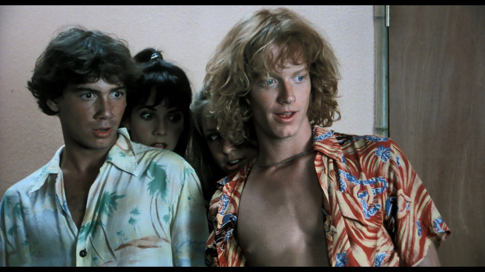 Interestingly, the theatrical version wasn't the original cut turned in by Badat; though there was a bit of nudity here and there (not all of it aesthetically Surf IIflattering, so be warned!), the producers went back and added some extra topless shots for a wild beach party scene including one unforgettable boob-smacking sequence. The director's cut starts off on a fairly normal Surf IInote with some surfer stock footage and Beach Boys music before gradually sliding you into the weirdness, while the theatrical one adds a text prologue and a darker, stranger main title in its place to establish right off the bat that we're in midnight movie territory. The theatrical version is also tightened up quite a bit, coming in just under a trim 90 minutes versus the 100 minutes of the director's cut. Both versions are presented together for the first time on Vinegar Syndrome's 2021 Blu-ray (issued as part of their Halfway to Black Friday sale), each on its own disc and worth seeing since there's substantial exclusive footage to both cuts. The packaging indicates these have been culled from multiple source prints, and they look essentially comparable in quality here and certainly a million times better than the VHS-sourced copies we've around for decades. The DTS-HD MA English 2.0 mono tracks sound good for what they are, with optional English SDH subtitles included.