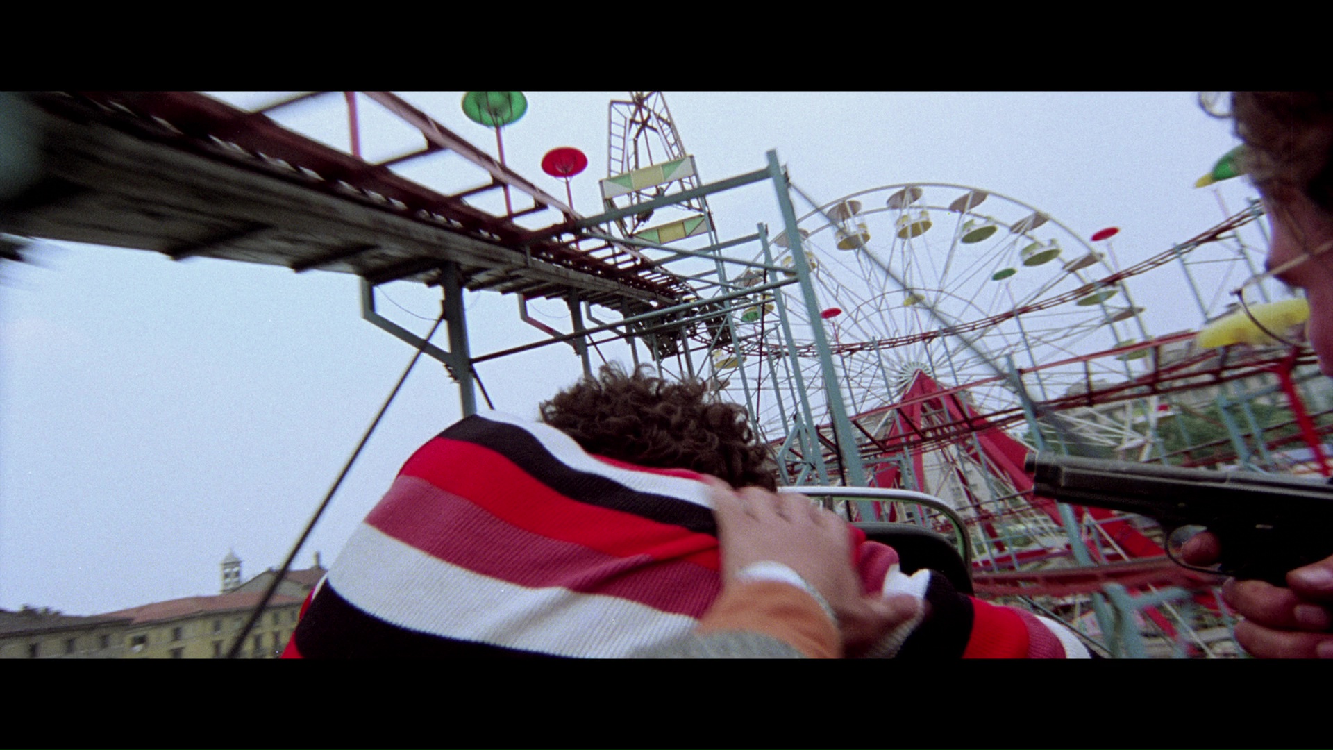 The serving plotline begins with a frizzy-haired young hooker being stalked during and after a wedding celebration by a sinister man in sunglasses who eventually catches up with her at her apartment, where he slashes her throat. Her presence had been noticed earlier by Inspector Germi (Cassinelli), a not-by-the-book undercover cop who teams up with a sly thief (Barra) to track both the vicious murderer and the instigators of a widespread kiddie and drug-dealing ring. When not being lectured by his boss (Ferrer), the unstoppable cop undergoes a series of bizarre adventures including a wild shootout on a rollercoaster ride, a knife attack in a theater filled with necking lovers during a screening of Martino's Your Vice Is a Locked Room and Only I Have the Key, two gruesome encounters with subway trains, a fight on the roof over a theater, and much,