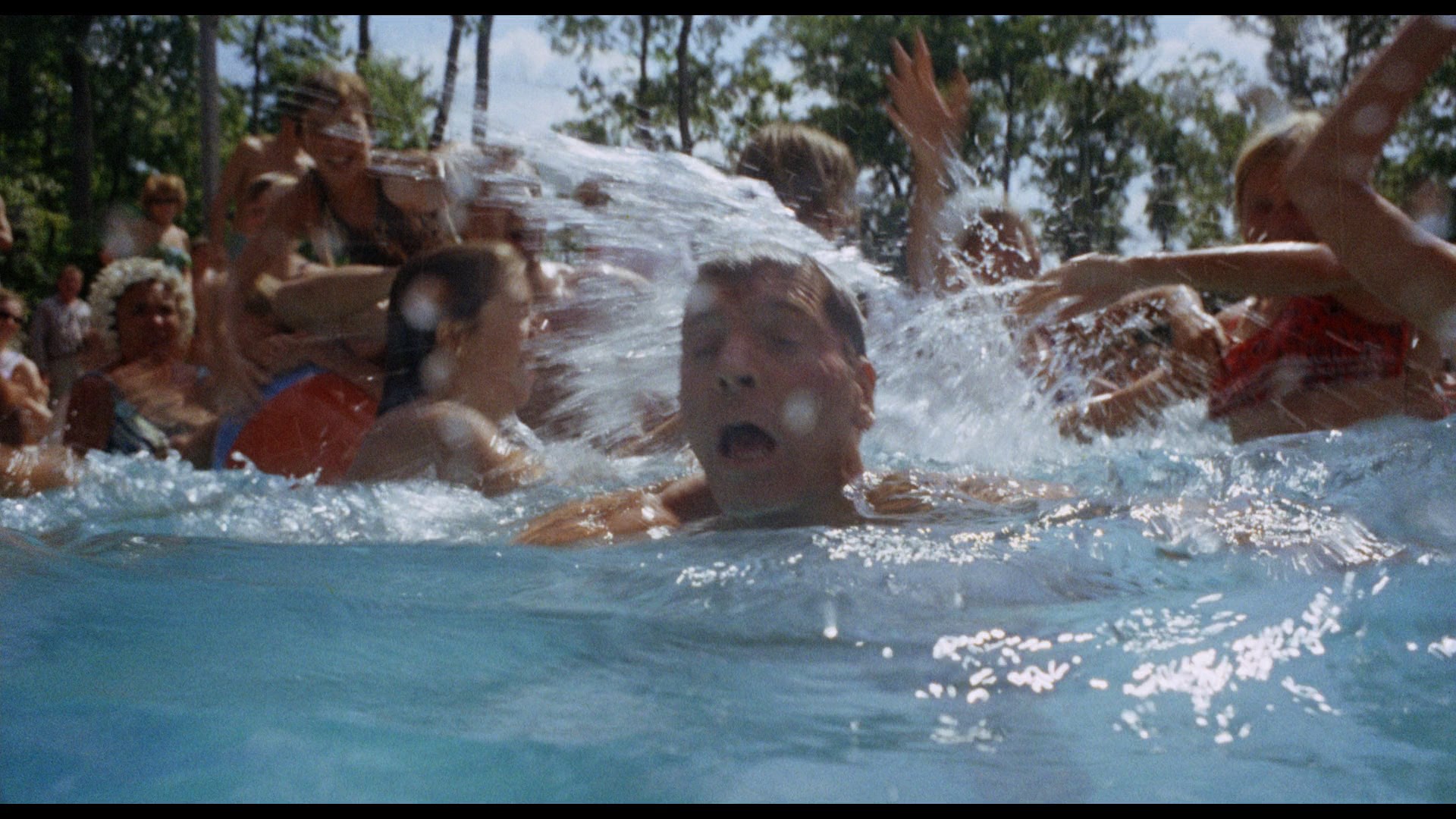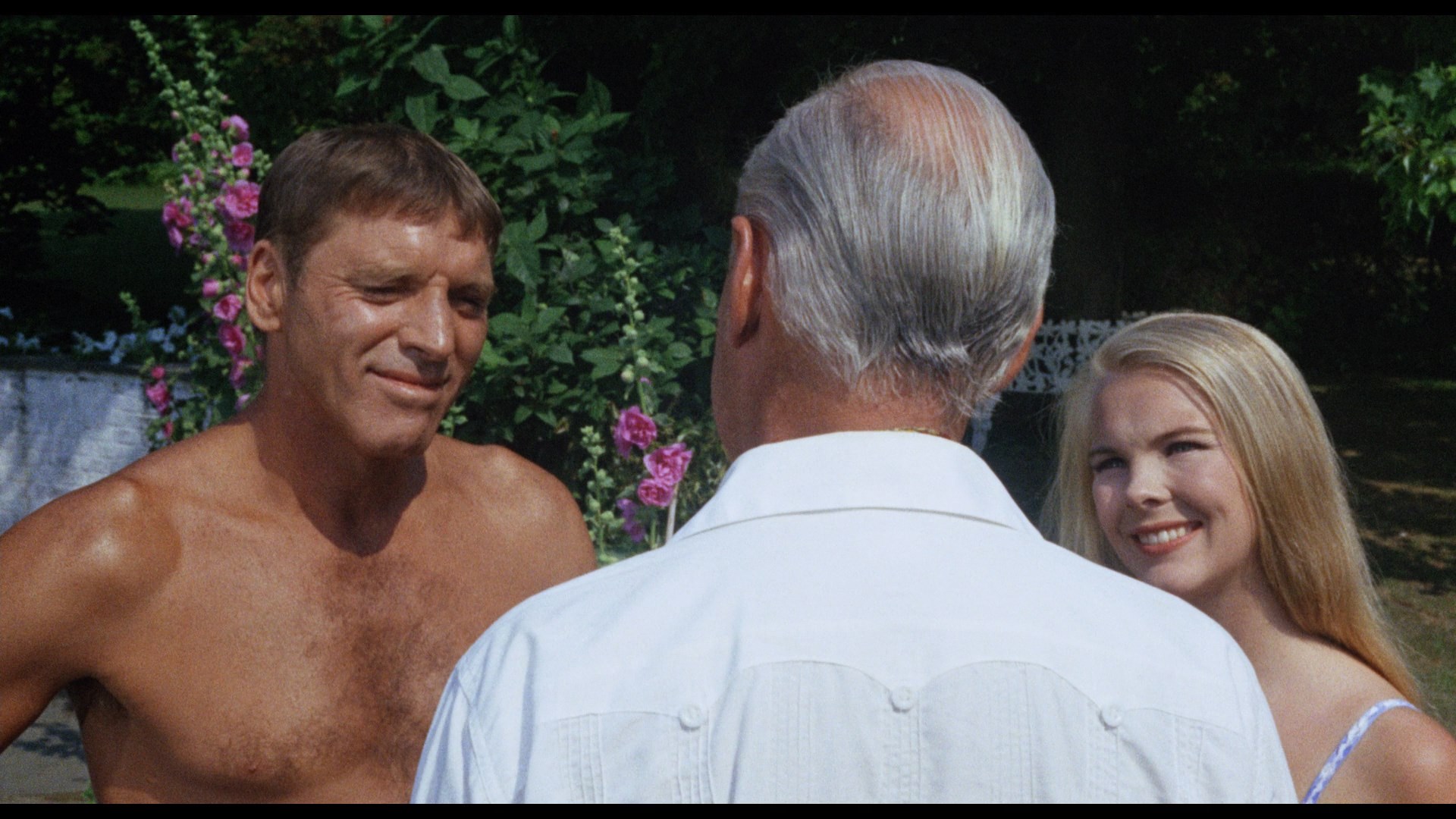 A TCM Film Festival interview from 2013 is a nice addition as well, clocking in just under 18 minutes with Marge Champion (still spry at 94 years old) interviewed by director Allison Anders. The focus is on The Swimmer at first, but other topics are covered as well including her role in Showboat (and the one showbiz venue she never explored, burlesque!). There's also a 25-minute audio reading of the short story by Cheever himself (who has a fleeting cameo in the film), a massive set of galleries (Frank Perry's storyboards, two sets of production stills, shots of Landgard, a look at the deleted scenes filmed with Barbara Loden before she was replaced by Janice Rule, U.S. and international marketing materials, and a DVD-Rom pdf of the screenplay. The American theatrical trailer is included ("The drama of a man suddenly plunged off the deep end of life!") along with five TV spots. Also included are filmographies for Frank and Eleanor Perry and Janet Landgard, plus a liner notes booklet with an appraisal by director Stuart Gordon and a handy, very articulate essay by Innis about the film's turbulent history. A subsequent reissue added in a soundtrack CD as well.
