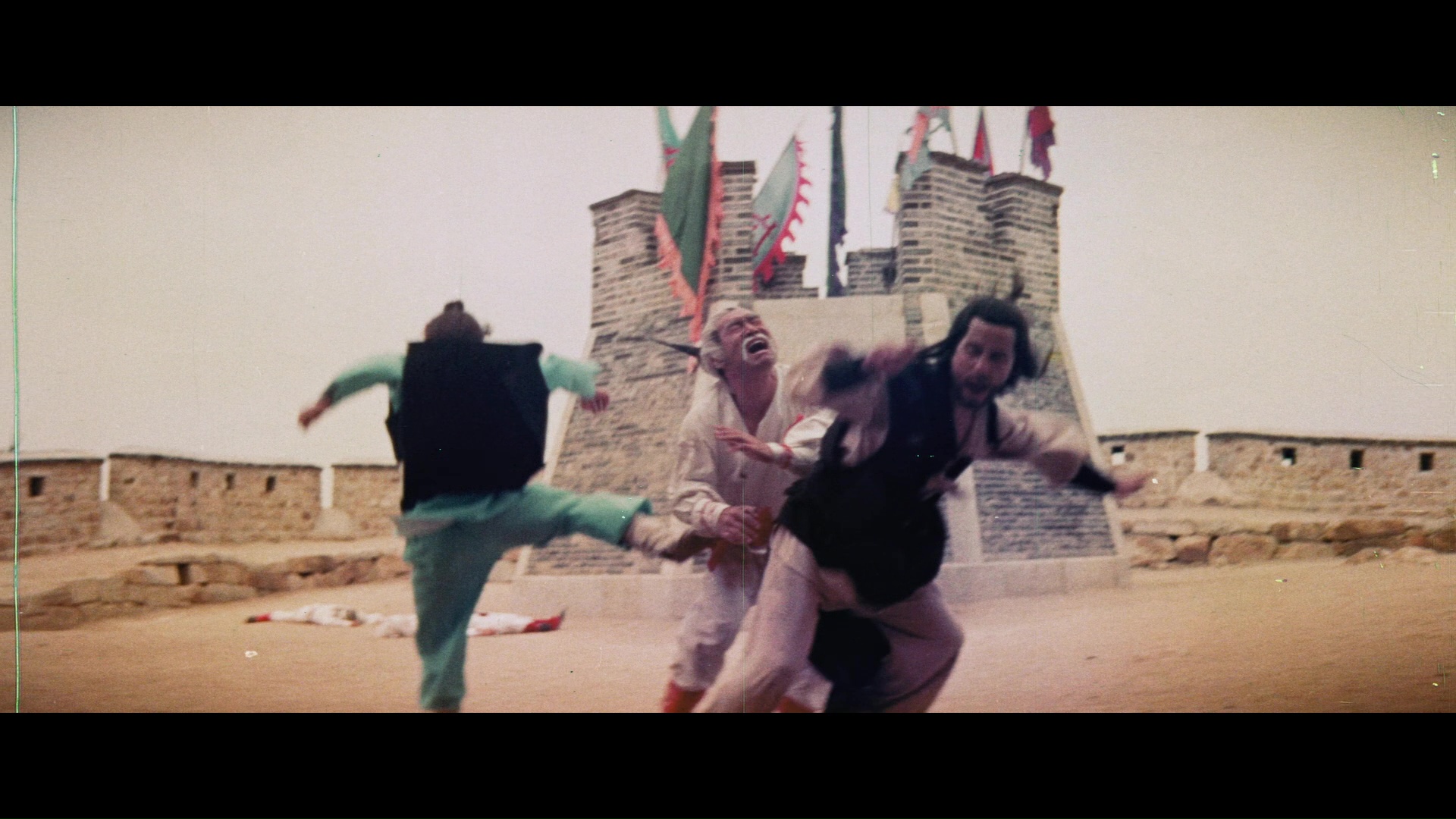Very fast paced, utterly ridiculous, and technically lacking, The Sword and the Claw is exactly the kind of insane discovery people hoped to find back in the days of video shelf rifling and should hopefully find a new audience with its Blu-ray release. According to the packaging it's culled from the only existing 35mm film elements, so expect to see plenty of specks and scratches. The main titles fare the worst (including an awkward substituted title card that kills the music for few seconds), but colors look great and it's a massive upgrade over the fuzzy VHS version. The DTS-HD MA English dub track sounds okay for something that doesn't demand much out of your speakers at all.