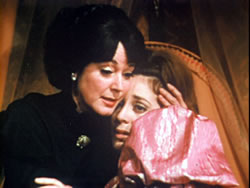The co-feature on this disc, The Oval Portrait, is a much more subdued affair lensed in color and previously released on VHS under the title One Minute Before Death. Wanda Hendrix, best known for her stormy brief marriage to Audie Murphy, had her final role her in the tale of a post-Civil War mansion where a wounded Yankee soldier and a young daughter have instigated a horrific curse when he paints her portrait, damning any man who dares set foot inside the house after him. Years later, the portrait begins to exert a malicious influence on Genevieve Howard (Hendrix), who supposedly bears a striking resemblance to the painting's subject, her cousin