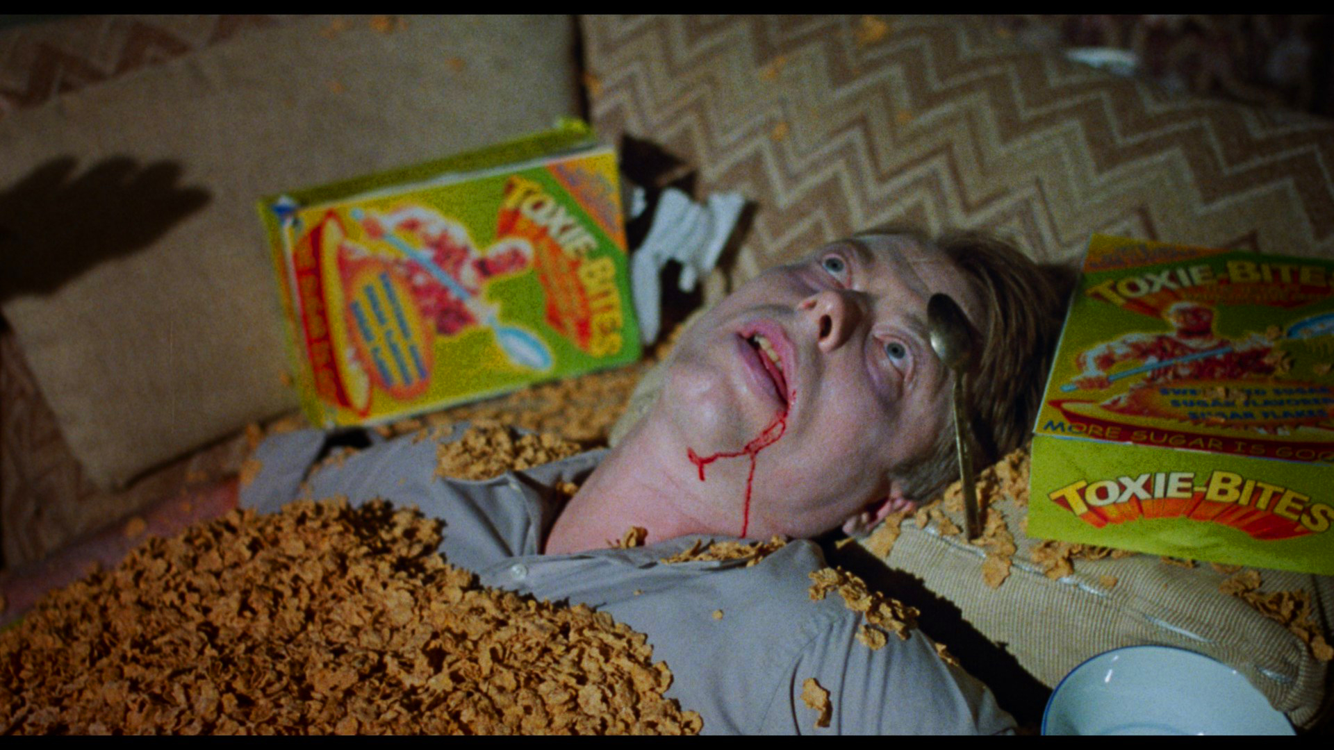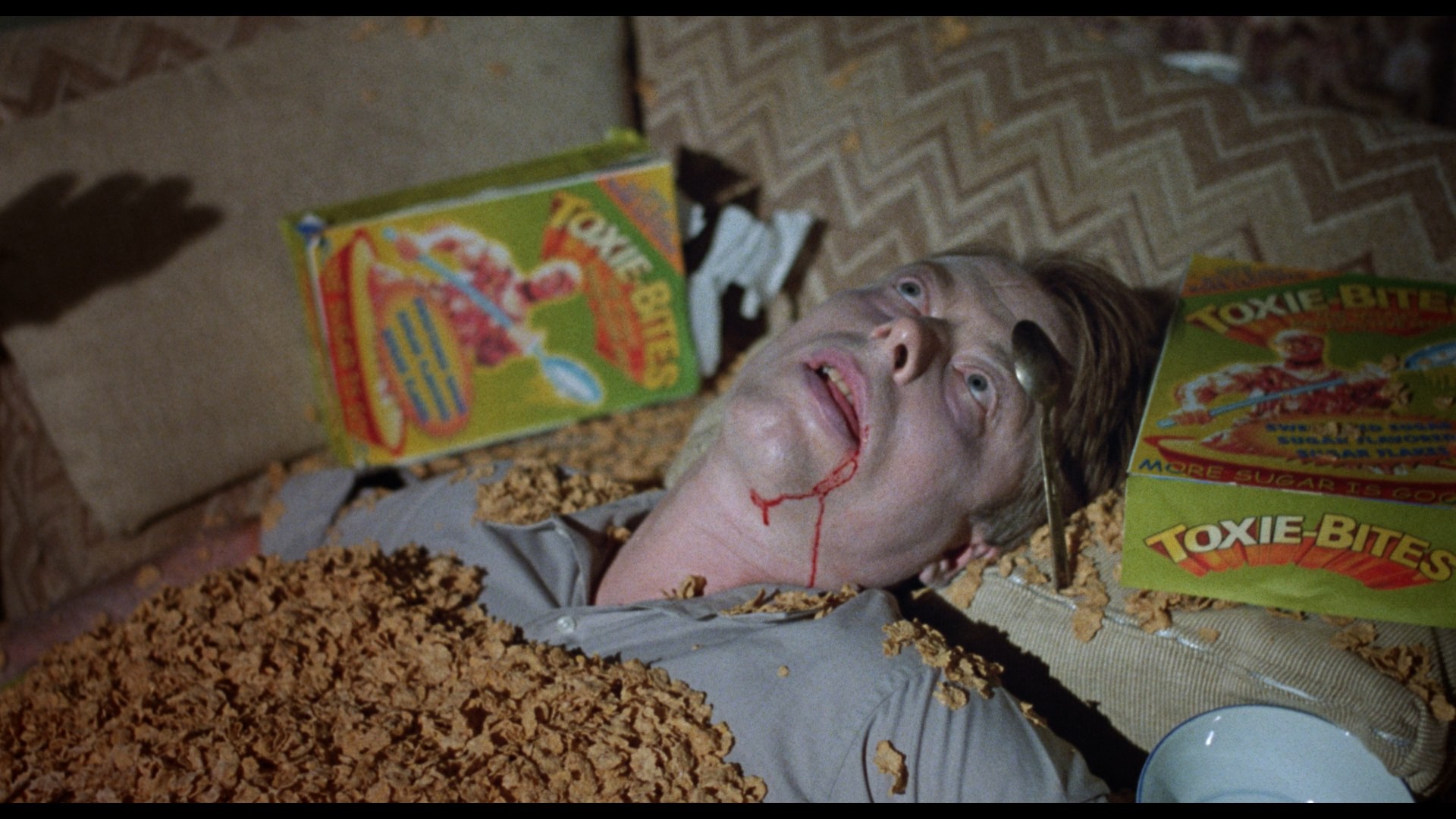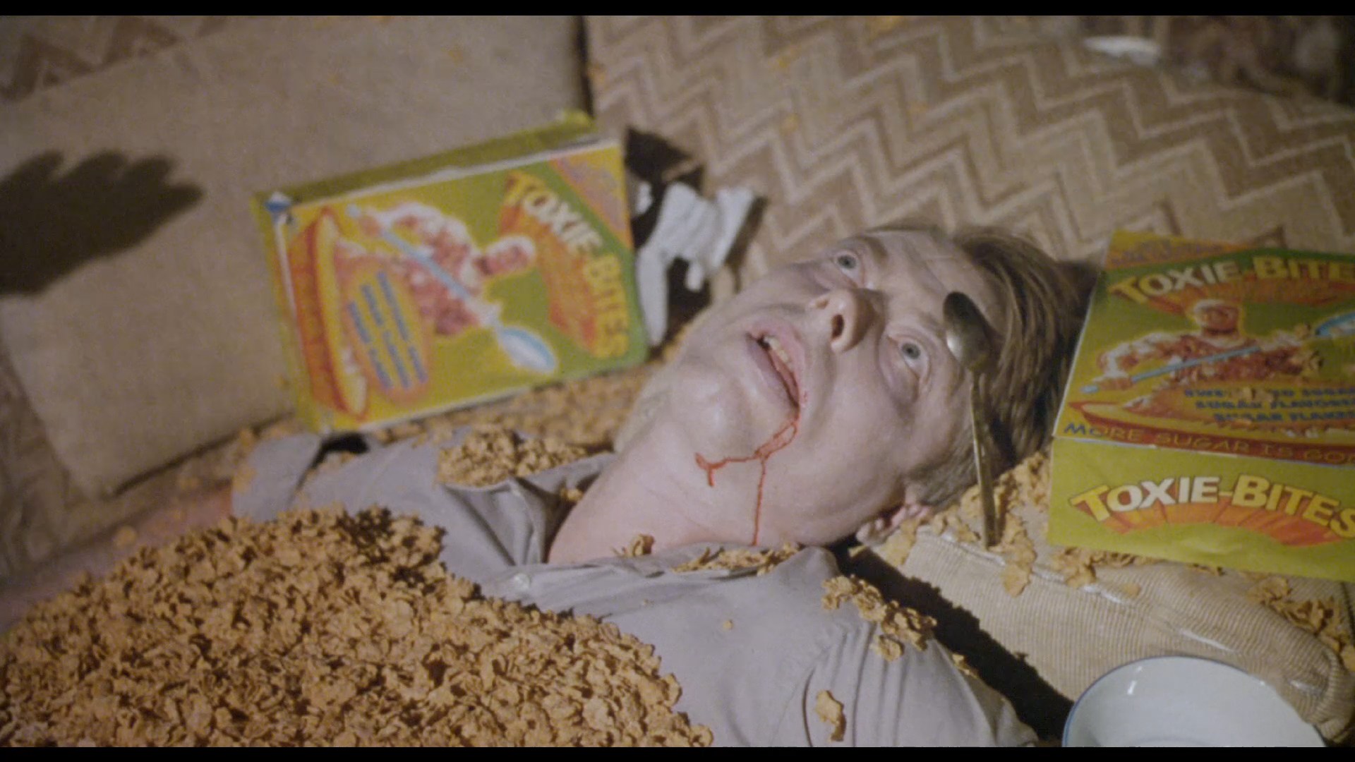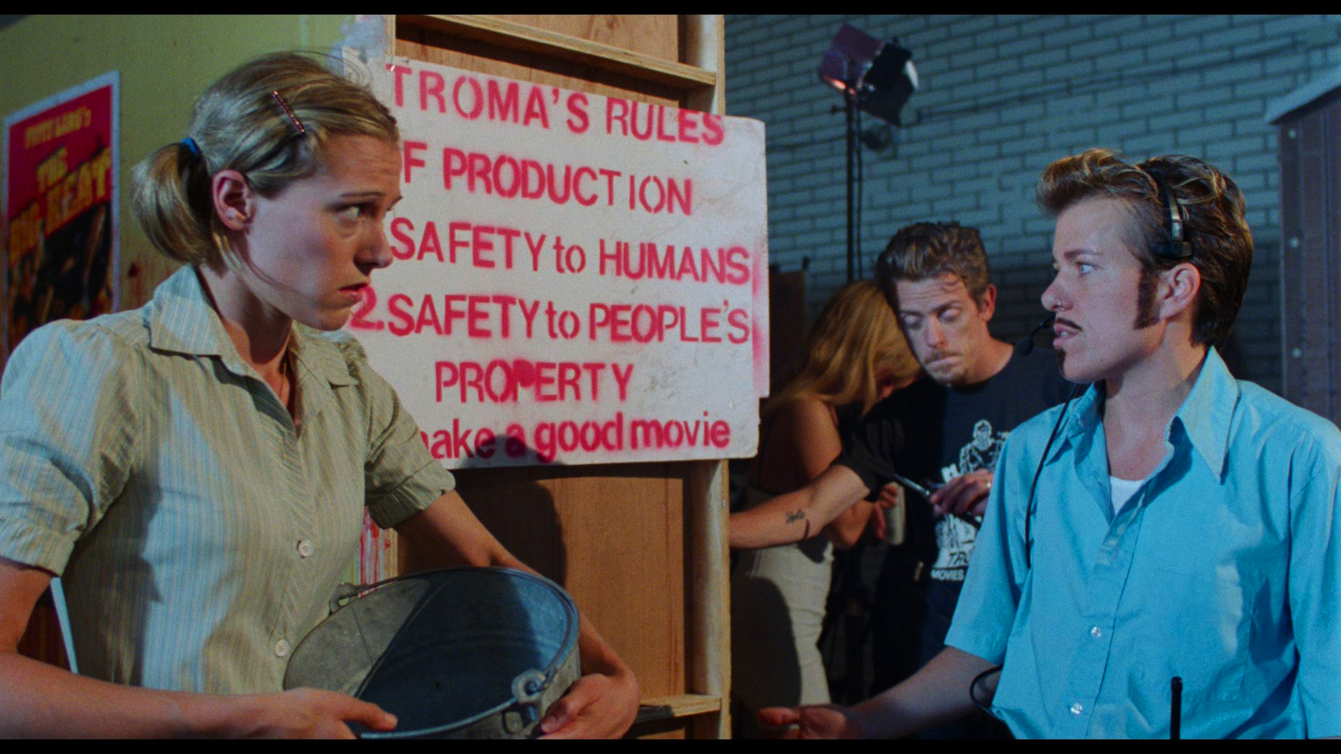 A double-disc 20th anniversary Blu-ray set released in 2019 features a matted presentation of the film , a different 3m23s Kaufman intro with Rochon and Haaga, a "20 Years Later" retrospective featurette" (14m13s), and Kaufman's solo commentary on the first disc. Disc two is devoted to the "Farts of Darkness" doc (in SD) plus the deleted scenes, Terror Firmerauditions, bloopers, Charlotte Kaufman piece, the comic-film comparison, a #ShakespearesShitstorm trailer, Gyno-Talk, and three music videos. Unfortunately the presentation was severely lacking with faded color, very weak blacks, and an iffy Dolby Digital 2.0 track that sounded heavily compressed.