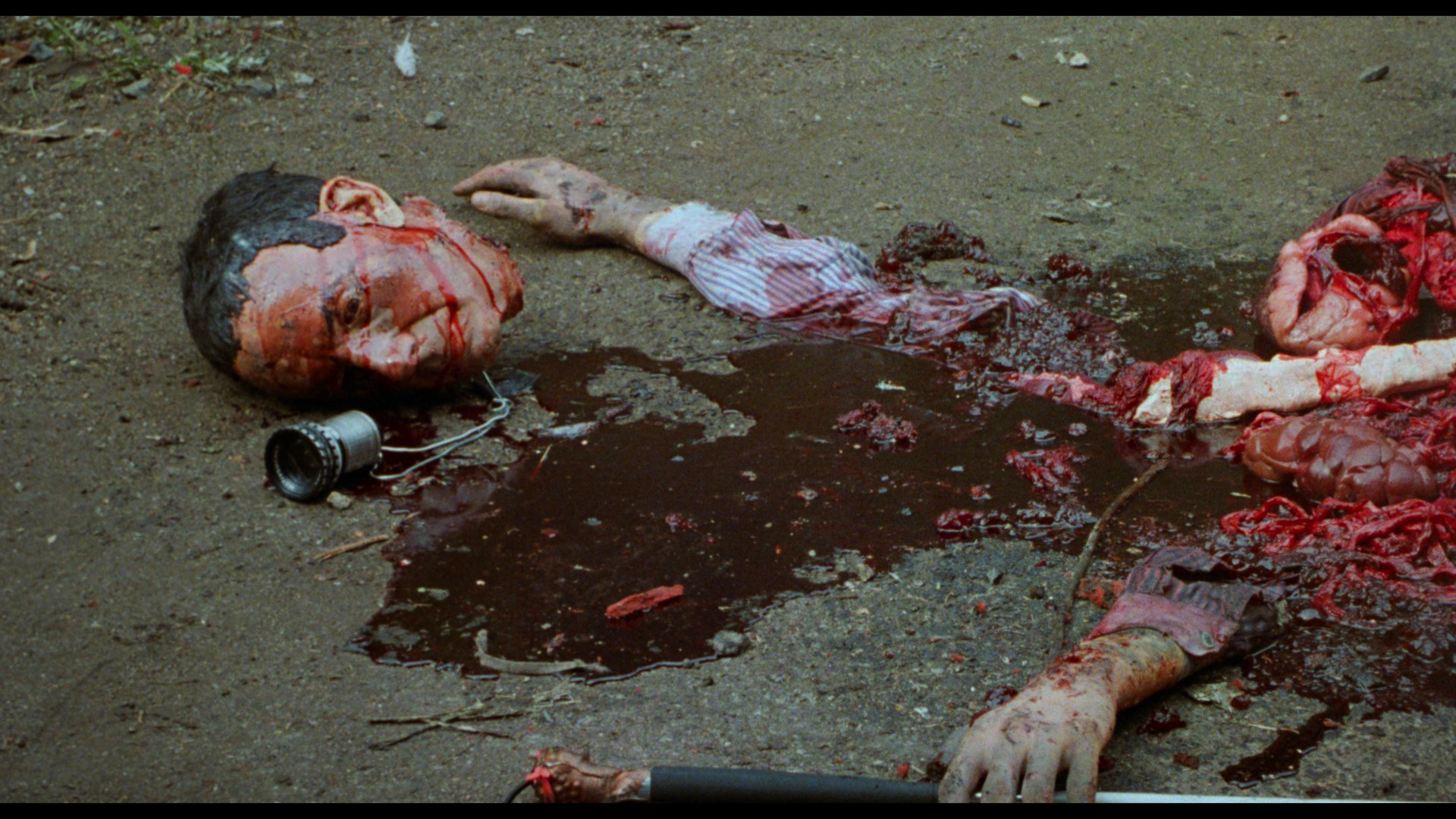Of course those options were mostly rendered obsolete with a three-disc(!) UHD and Blu-ray edition from Vinegar Syndrome featuring a fresh new 4K scan from the negative on both the UHD and first Blu-ray, plus all three commentaries. Image quality is a tremendous improvement with the Dolby Vision grading on the UHD creating some wild visuals, and both detail and film grain look excellent. Some minor single scratches pop up in the first quarter or so, but it's nothing to worry about. The DTS-HD MA 2.0 English stereo track is also far more healthy than the earlier Blu-ray, with optional English SDH subtitles provided. The first Blu-ray also features new extras beginning with "Cinema Terror FirmerThrough Chaos" (48m40s), featuring Kaufman, writer Douglas Buck, editor Gabriel Friedman, Keenan, Haaga, Rochon, Sean Pierce, Greg "G-Spot" Siebel, Charlotte Kaufman and crew members Joe Lynch and Eric "Zork" Alan sharing more tales about getting Terror Firmerinto character, acting out on the city streets, and looking back at the killer's now touchy revelation and the motivation behind it. Then "Lloyd Gets Spooked" (16m46s) covers Kaufman's appearance at the film's raucous Minneapolis premiere with plenty of footage and new interviews with members of Carshool-Film-O-Rama. Finally "The Zork-ive" is a treasure trove of previously unreleased interviews Zork conducted during production with Kaufman (7m57s), LaTourelle (13m9s), actress Reverend Jen Miller (8m8s), Lemmy (4m20s), actor Roy David (8m25s), Haaga (2m50s), actor Yaniv Sharon (7m2s), and the one and only Joe Franklin (13m34s). The second Blu-ray houses the remainder of the video extras including the extended SD version (open matte as usual with all the surprising extra frontal nudity) with reinstated deleted scenes and editors' commentary, the "Farts of Darkness" doc, the "20 Years Later" featurette, alternate footage, auditions, bloopers, Charlotte Kaufman interview, deleted scenes with commentary, escalator scene comparison, Gyno-Talk, Kaufman's intro from the earlier Blu-ray, and the teaser and trailer. Note that the music videos are not carried over, so hang on to one of those earlier discs for those. The deluxe set also comes with a 40-page, perfect-bound book with new essays by Mathew Klickstein, Alex Gootter, and Heather Drain studying one of the wildest and most representative entries in Troma history.