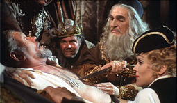 Resolutely British in tone, Theater of Blood brings together a once in a lifetime cast of veteran thespians, including Coral Browne (Price's real life wife), Milo O'Shea as a perplexed inspector, Euro starlet Diana Dors in a funny twist on Othello, beloved Miss Marple actress Joan Hickson, and most memorably, Robert Morley as a poodle lover dragged into a berserk modern version of Titus Andronicus. The lavish production design and razor sharp script allow Price and Rigg to storm through the proceedings in a delicious array of disguises, such as a '70s-styled hairdresser, a television host, a masseuse, and a wine-tasting expert, to name but a few. Special notice should also go to the lyrical, poignant score by Michael J. Lewis, which kicks off with a poetic credits sequence cut together from Shakespeare