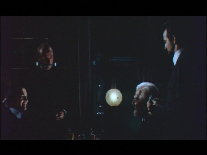 Prone to holding seances on spooky nights, wheelchair-bound Dr. John Hichcock (Killer Cop's Jotta) lives a very tempestuous existence inside his Scottish country estate with his wife, Margaret (Steele), administering to his every need when he isn't being administered to by his private physician, Dr. Charles Livingstone (The Weekend Murders' Baldwin, just before becoming a prolific TV director). Also on hand is his devoted lifelong servant, Catherine (Black Sabbath's Medin), and his priest Canon Owens (The Bird with the Crystal Plumage's Raho) frequently pays visits including those paranormal sessions taking advantage of Catherine's psychic gifts. However, Margaret and Charles are secretly having a torrid affair and are cooking up a plan to get rid of John permanently using his current treatment involving shocking his system with poison and antidote injections. When Charles goes through with the plan and the John seemingly dies, the aftermath proves to be a nightmare for the scheming couple when the valuables from his will are missing from his safe and the dead man's ghost tormenting them at night. Is there really a malicious haunting in the house, or is there more going on than meets the eye?
