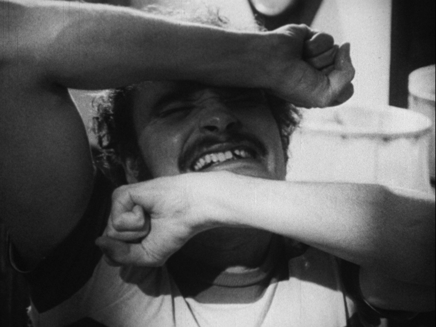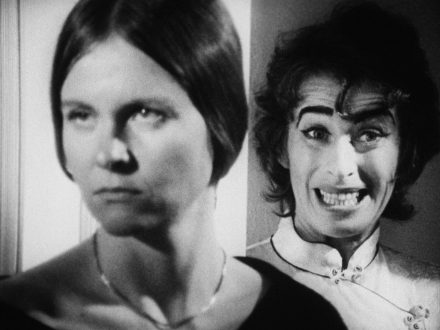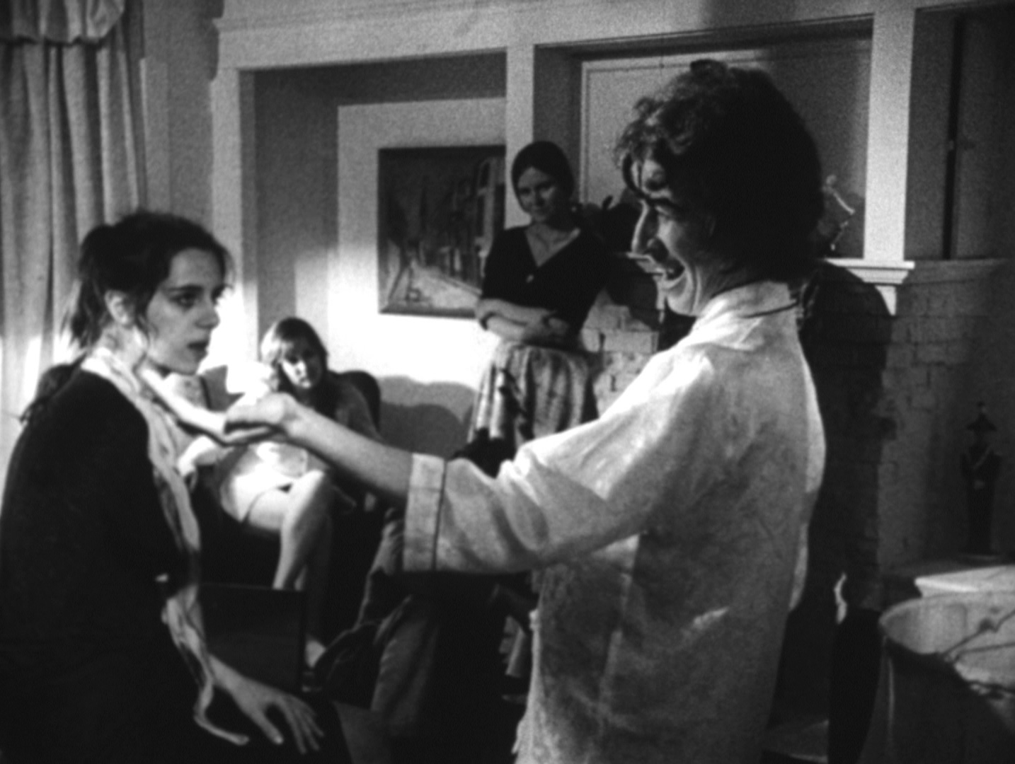 The Synapse release (as separate Blu-ray and DVD editions) features a new HD scan of the only complete 16mm print (as explained in a liner notes insert written by company president Don May, Jr.), with some missing frames pulled from other sources to compile the best-looking version possible. Anyone familiar with the film should be very pleased with the results, which are naturally filmic without losing that scruffy 16mm veneer. Some age-related damage is still evident with some minor thin scratching visible here and there, but under the circumstances it's a heroic restoration effort and a major leap up from all past versions. The full 10-minute intermission is reinstated here as well (a shorter version was included on that one VHS release in the U.S.). The DTS-HD MA mono track on the Blu-ray does what it can with the original audio, which has always sounded awful due to the tinny original dialogue recording (most of it using on-set production audio) and an aggressive sound mix loaded with piano-heavy music and exaggerated sound effects by frequent McDowell collaborator Mark Ellinger (who also starred in McDowell's nutty 1972 adult film, Lunch, and cameos here as the late Mr. Hammond). Thankfully Synapse has provided optional English subtitles (which come in very handy during some of the more cacophonous scenes) and additional ones in French, German, and Spanish. A second audio track features a 1972 interview with McDowell and an unnamed interviewer, providing a very cheerful and detailed walk for 85 minutes through his creative career and process from his early days as a painter through the epiphany that led to his switch to award-winning filmmaker.