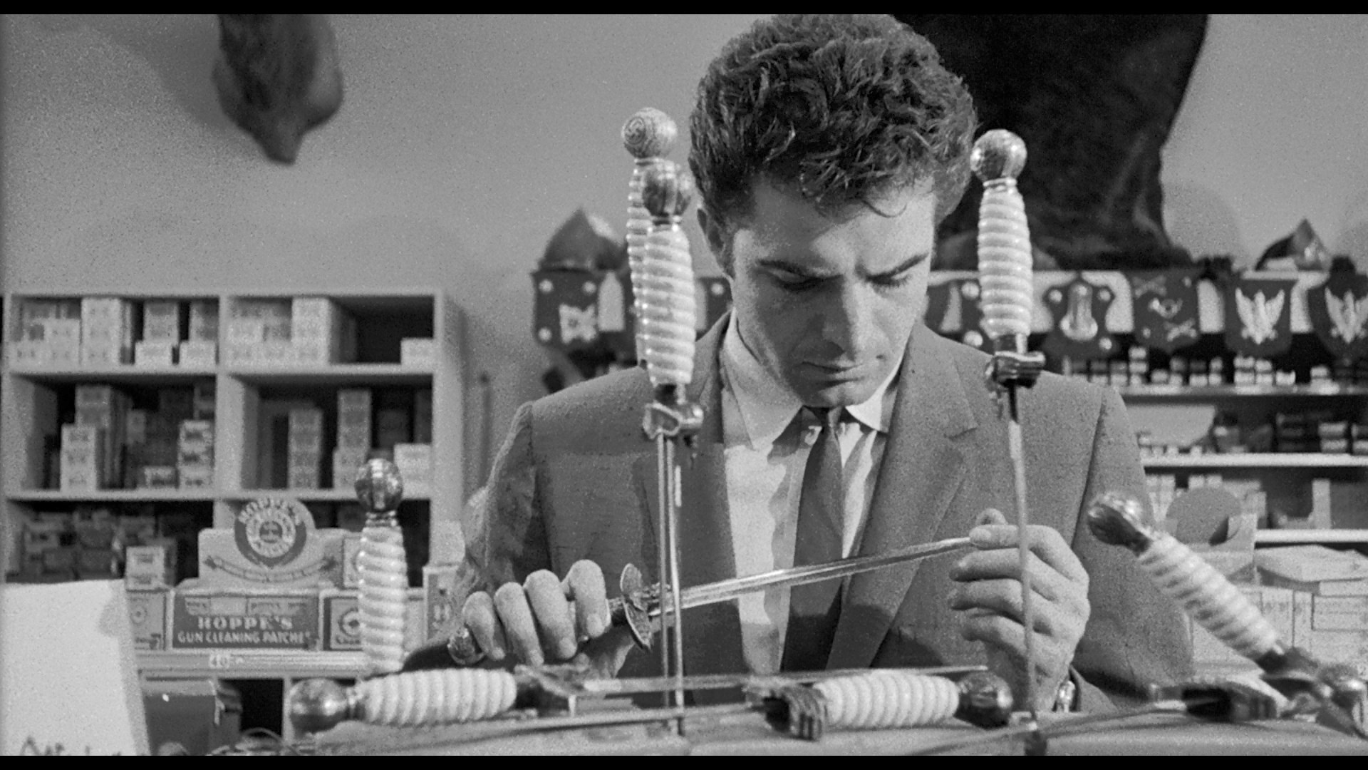 Blu-ray premiere here looking great with the catalog HD scan holding up quite nicely even in the many dark scenes. A packed new commentary by filmmaker and writer Gina Telaroli gives lots of props to Crawford (including a welcome shout out to his memorable hosting gig on Saturday Night Live) while also giving plenty of attention to director Richard Parrish and some of her favorite elements like scene-stealing character actor Jay Adler. Borgnine is represented twice here, first with an audio track for the film featuring his 2001 The Guardian Interview chat with Clyde Jeavons at the National Film Theatre in London for 79 minutes about his life and career in the usual color manner that made him such a beloved interview subject. Then "Ernest Borgnine in Conversation" (48m52s) features him in 2009 going over his career with Adrian Wootton at the BFI Southbank, even waxing poetic on occasion as he covers his work on the stage and both big and small screens, including a great bit about The Wild Bunch's gun violence. Following the theatrical trailer and another hefty image gallery, the disc closes out with the 1956's Three Stooges short "Hot Stuff" (16m2s) with Shemp, Larry, and Moe going undercover