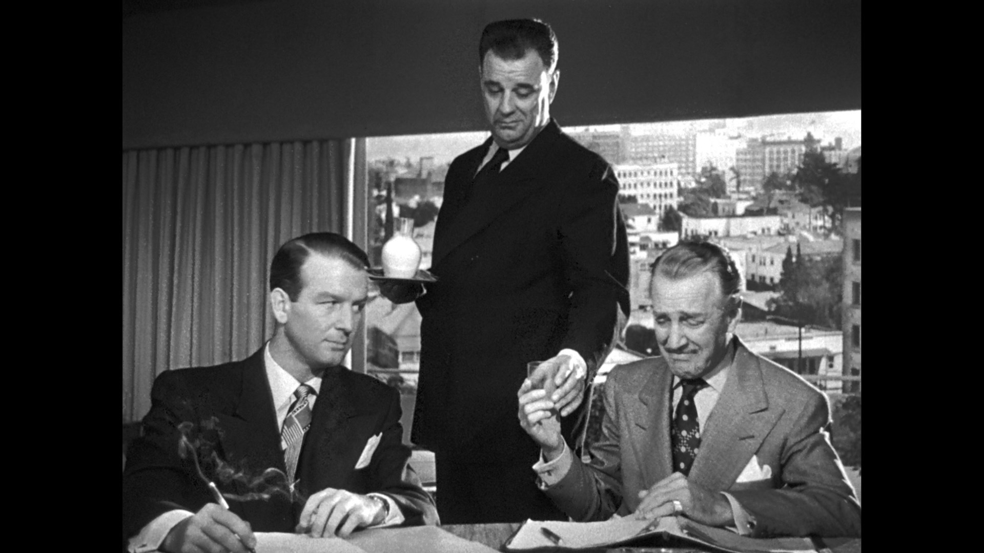 she parses out the film's oddball mixture of moody Karlson crime film and stagy drama, with some fun juicy bits along the way like the tension that may nor may not have arisen between two of its stars. On the video side you get the energetic theatrical trailer, which is a bit curious as it promises a film "tense with suspense" and "long, loud, low-down laughs!" Well, yeah, Brian Keith has a lot of fun zingers, but... Then there's another comprehensive image gallery, followed by "The Senate Crime Investigations" (61m27s), which can be viewed in four parts or in one big chunk documenting the U.S. Senate Special Committee to Investigate Crime in Interstate Commerce and its queries under Senator Estes Kefauver to wade through hundreds of witnesses. (Check out Indicator's disc of The Valachi Papers to find out what happened the following decade.) Finally, 1945's Three Stooges short "Idiots Deluxe" (17m32s) with Moe, Larry, and Curly landing in court over an assault incident (imagine!) before heading to a country cabin for a very grizzly encounter.