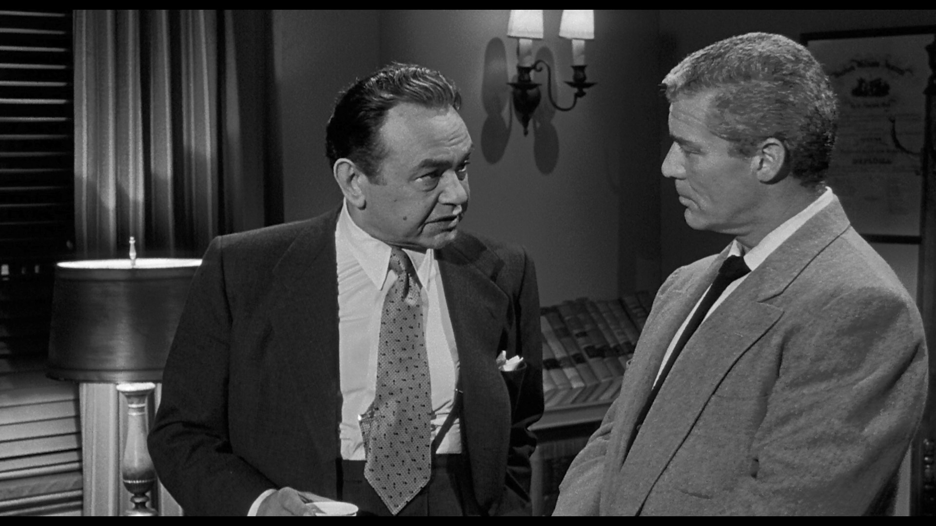 This one was directed by Phil Karlson, a busy craftsman with an occasional classic under his belt like Kansas City Confidential and The Phenix City Story, and the approach definitely drifts even further from the darker terrain of immediate post-WWII noir. The stage play origins of the story give it an odd feel not unlike Rogers' color/scope thriller from the previous year, Black Widow; why she decided to move in this direction instead of sticking with musicals or romantic comedies is anyone's guess, but the results are certainly wild to behold. Long available on DVD in a variety of iterations (including an early Japanese noir set of Sony titles, a standalone PAL release in the UK, and that TCM box mentioned above), Tight Spot makes its Blu-ray debut here and looks as good as its peers. A new commentary by Nora "The Nitrate Diva" Fiore fills up every second of the film with
