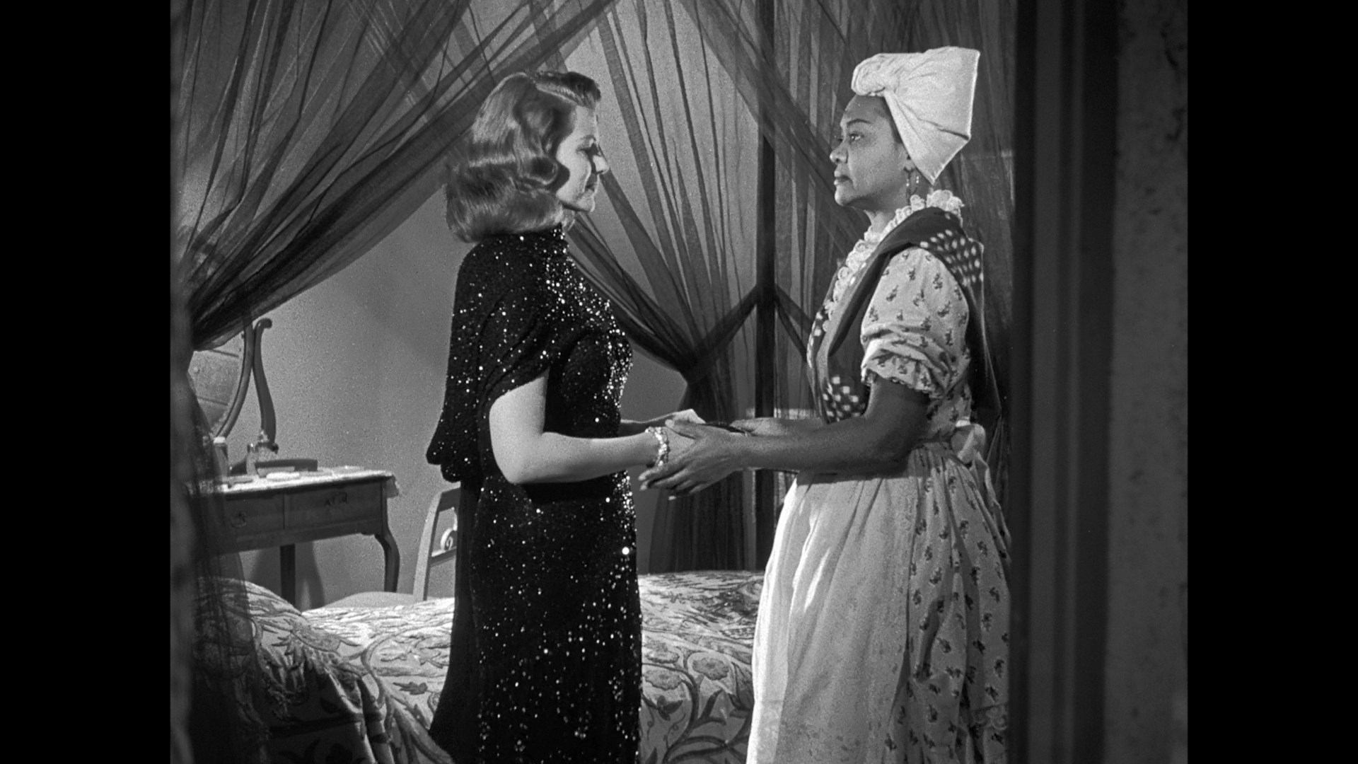 A successful attempt to recapture the magic of Gilda, 1952's Affair in Trinidad reunites Glenn Ford and Rita Hayworth (who gets a couple of flashy dance numbers again here) in her first film for the studio in four years. Here the action takes place in the frequently rain-soaked colony where nightclub performer Chris (Hayworth) discovers that her husband, whose recent death has been ruled a suicide, was actually murdered. The arrival of her brother-in-law, Steve (Ford), who's under the impression his brother was getting him a job, complicates things further as they embark on a perilous investigation that uncovers some nefarious activities by family friend Max Fabian (Scourby).