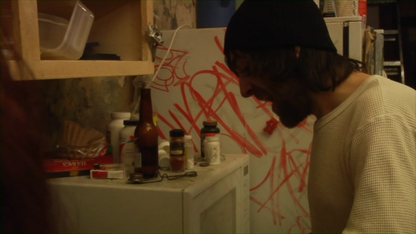 Taking yet another unexpected swerve in their pattern of video releases, Artsploitation brings Toad Road to DVD looking about as good as the very rough original source will allow. The film appears to be shot mostly in natural light and varies accordingly, with dialogue also captured as it happened on the set, warts and all. As usual there's a hefty selection of extras including an audio commentary with Davidson, director Jason Banker, actors Jamie Siebold and Scott Rader, and associate producer Jorge Torres-Torres, who talk about the unorthodox production and some of the crazier stories along the way like the execution of a particularly nasty face punch. Also included are some deleted scenes amounting to additional character development between the leads, a rough but fascinating assembly of 13 minutes of behind the scenes footage, a "DUI Story" from one of the supporting players, a beer shotgunning demo from Davidson, audition tapes for the two leads, and bonus Artsploitation trailers for Vanishing Waves, Animals, Clip, and Hemel. Also included is a liner notes booklet with a brief statement by executive producer Elijah Wood (whose SpectreVision Presents line kicked off with this film) and an additional essay by director and HammerToNail.com editor Michael Tully. Not easily forgotten, this is definitely one for all you adventurous viewers out there.