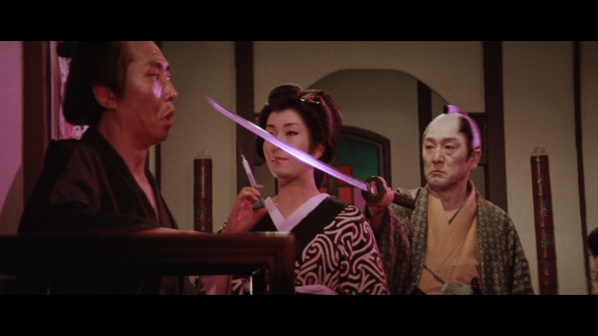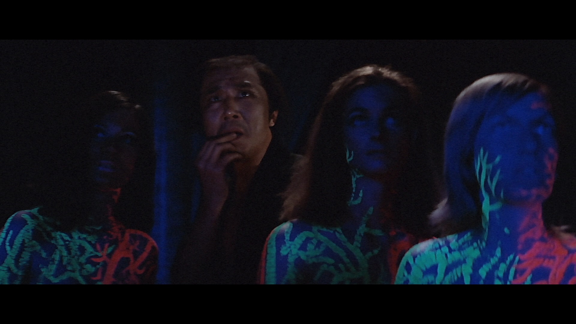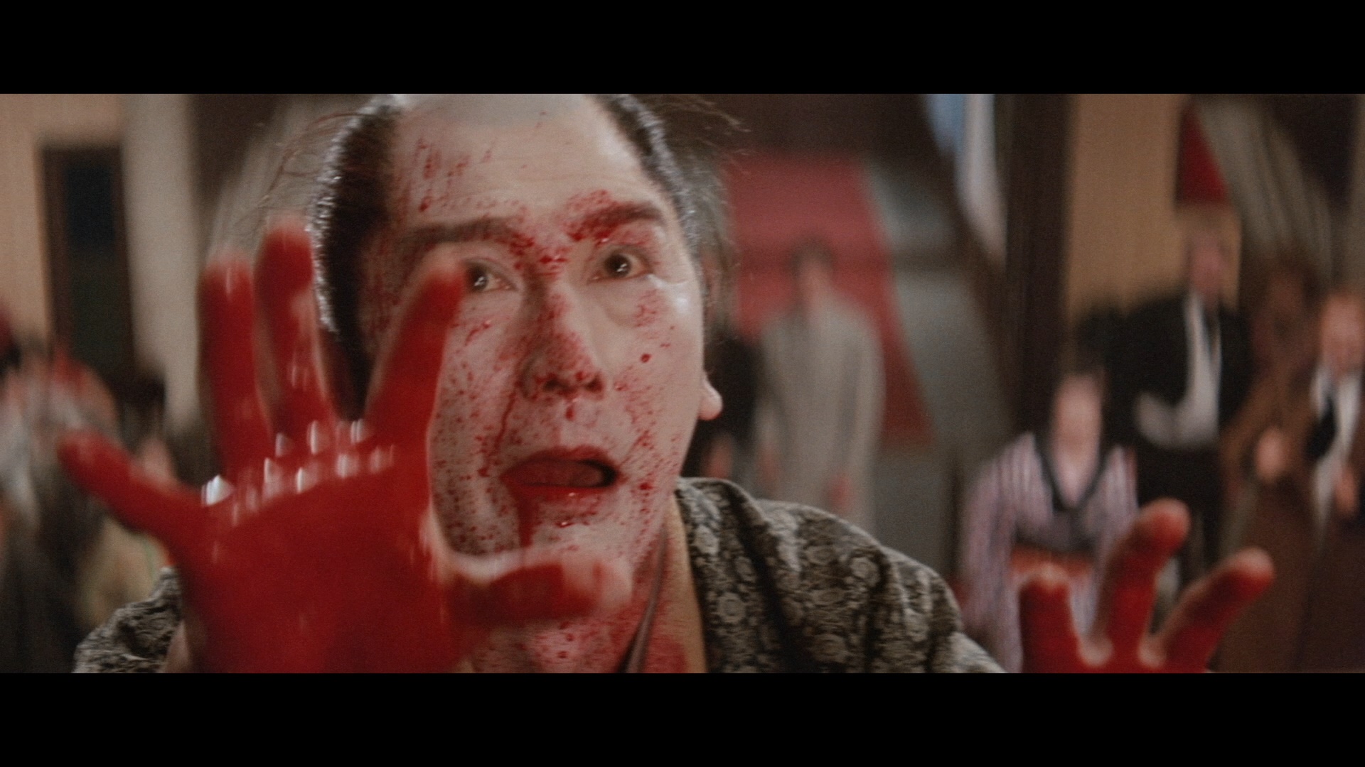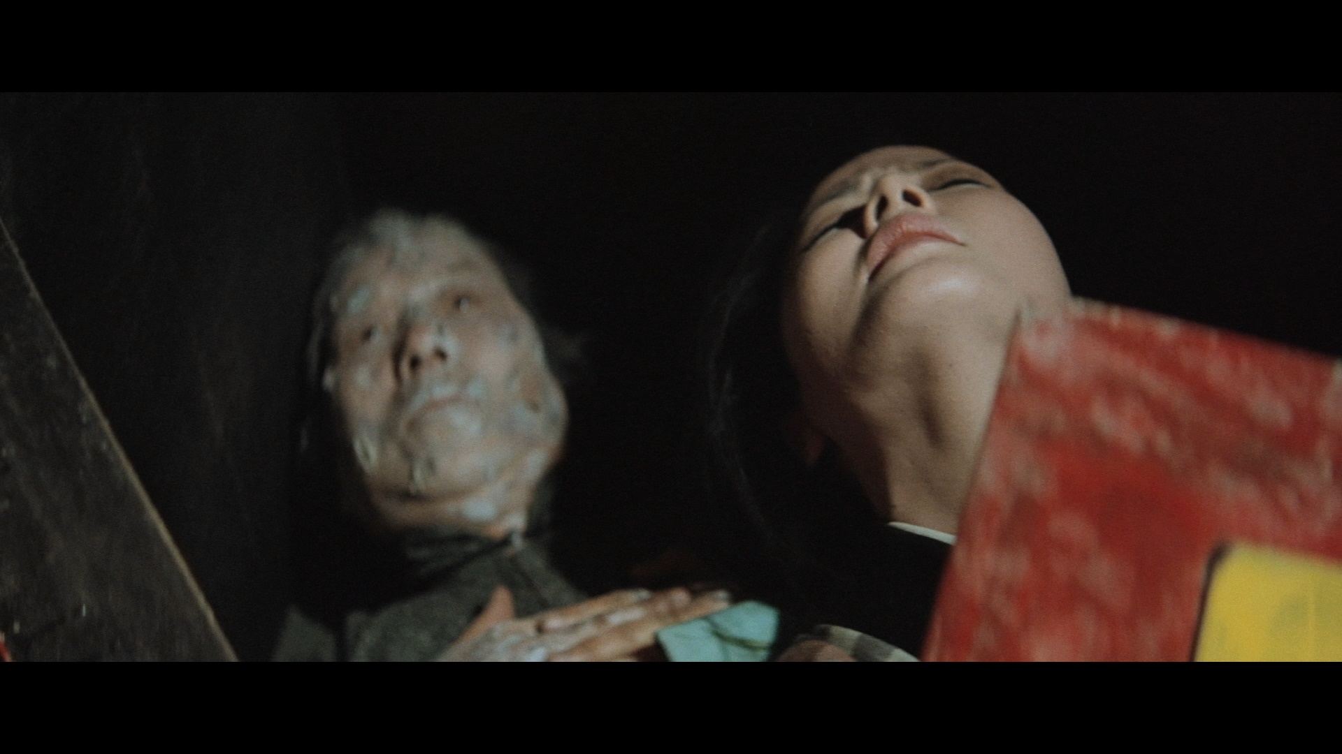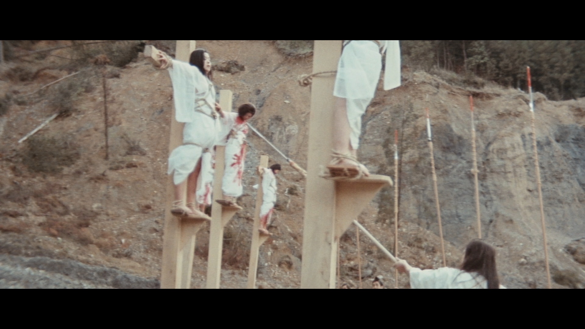 Ishii's film wastes no time assaulting the viewer with a harsh opening featured the feudal-era execution of several women with saws and spears before the opening credits have even finished. That curtain raiser may have no narrative connection to the rest of the film but it certainly sets the stage for a world where everyone can be debased and turned to savagery, a theme that turns up numerous times in what almost feels like a three-part anthology with shifting protagonists. The approach also feels a bit similar to another film from the same year, The House That Screamed, with viewer expectations being repeatedly upending to a disorienting degree. The jagged storytelling approach may throw off newcomers to Ishii's approach, but if you just sit back and go with the flow you'll be bombarded with one insane set piece after another before the insane climax involving a literal inferno and psychedelic, glow-in-the-dark body