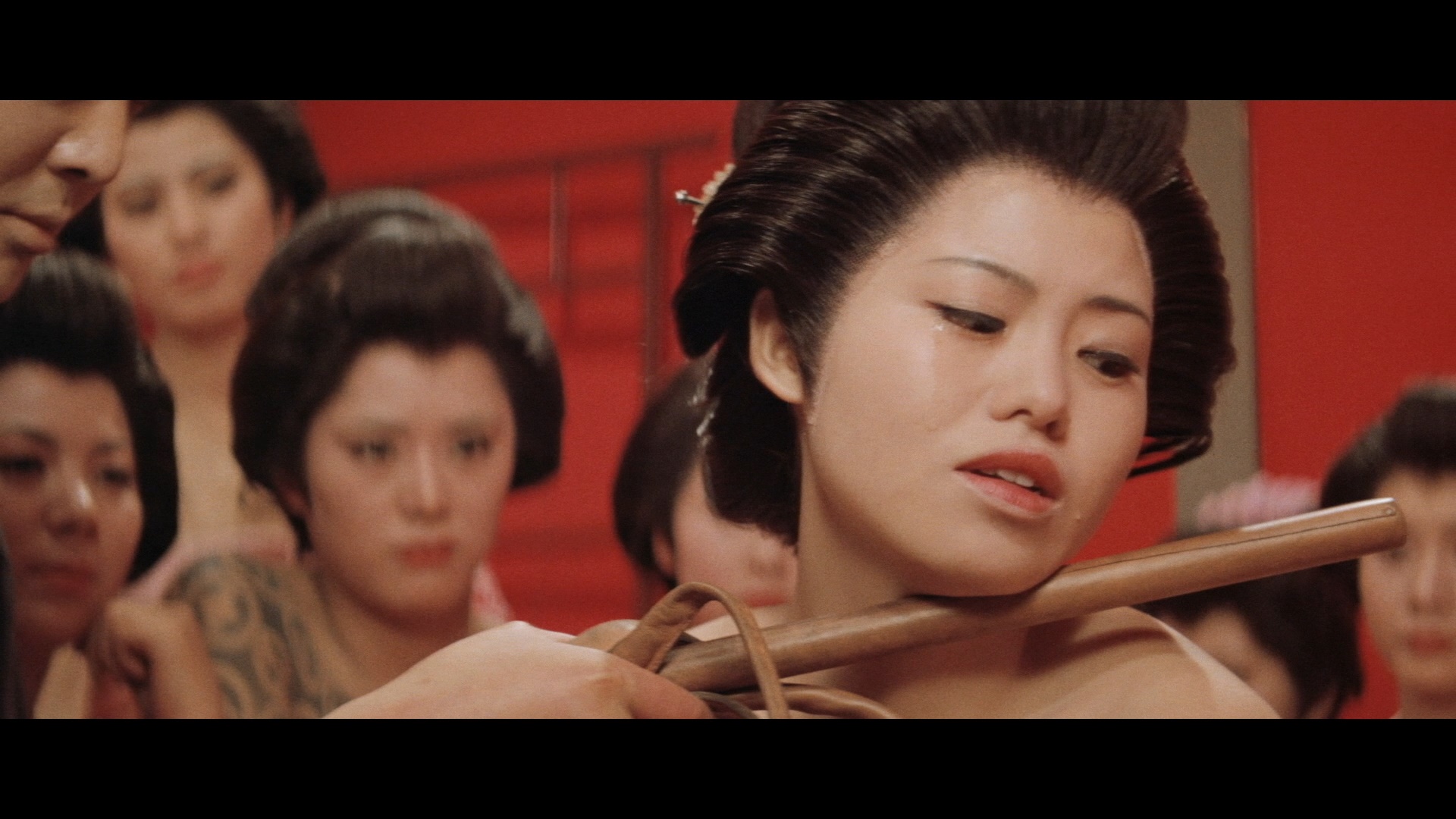 Her womanhood imprisoned by a chastity belt, Nami (Goke, Body Snatcher from Hell's Katayama) resorts to a bout of nocturnal grave robbing to get the key that could set her free. Unfortunately it turns out that failed gambit is just part of her predicament rooted in her debt to a band of vicious loan sharks run by the conniving Samejima (Ikiru's Tanaka). He ends up shoving her without warning into a geisha house -- "I didn't know about such places!" -- where the