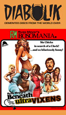 career with one of his most outrageous films, 1979's Beneath the Valley of the Ultra-Vixens, whose title manages nods to two of his most popular hits, Vixen and Beyond the Valley of the Dolls. If anything this is the capper to a trilogy of completely insane spectacles he churned out in the second half of the '70s, starting with SuperVixens and continuing with Up!, which found him pushing his artistic sensibilities as far as possible in terms of storytelling, editing, and basic human anatomy. Here he built a showcase for his partner at the time, Francesca "Kitten" Natividad, who had appeared as the au naturel Greek chorus in Up! and would go on to a scene-stealing appearance in The Wild Life and headlining the very popular VHS series Takin' It Off as well as adult film and nightclub stints. The fact that she's only one of the many wonders on display here is a testament to Meyer's machine-gun approach, which makes you wonder how anyone could ever classify these as pornography since they don't even begin to operate that way. After famously writing the