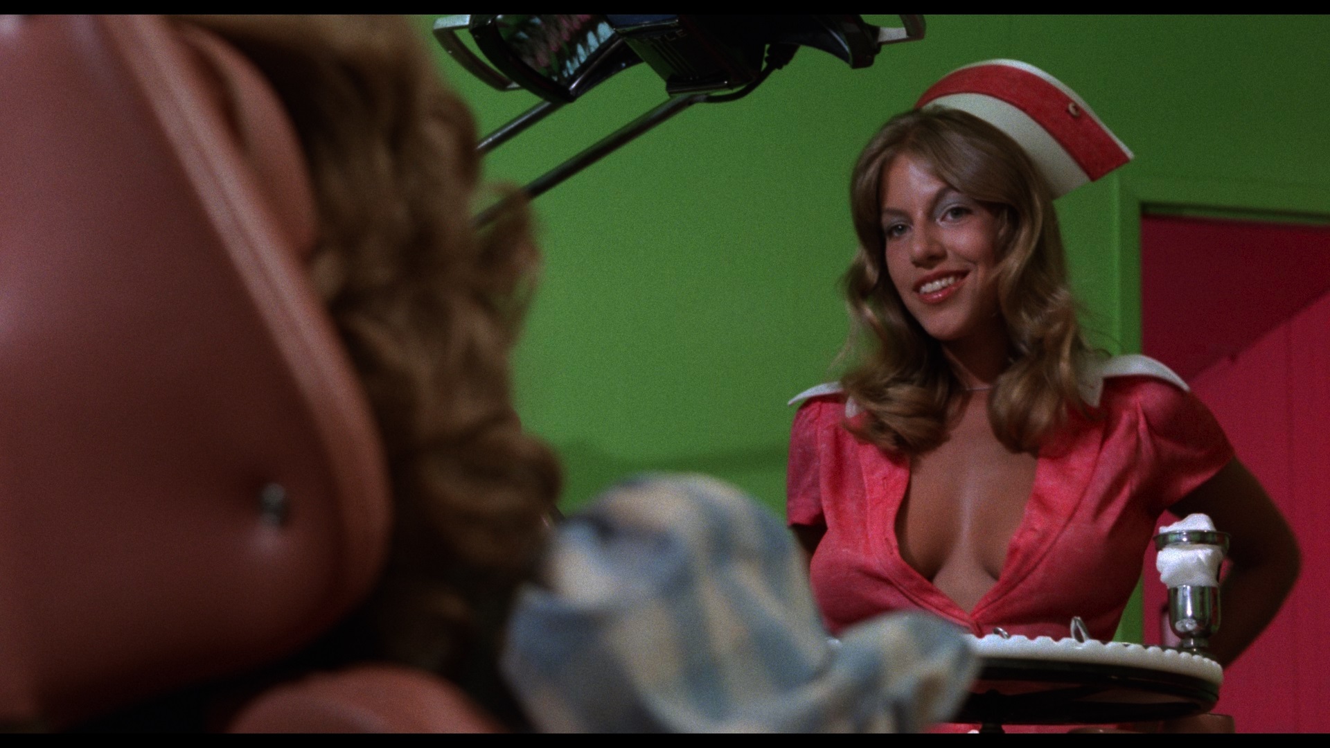 The film opens with a disclaimer about the restoration (done by Severin) coming mostly from the original camera negative, which hasn't been stored in ideal conditions over the years. You'll barely notice though as, apart from some very light residual staining and other fluctuations in a few shots, they've done a triumphant job of presenting this looking better than you could ever imagine. It's certainly more pristine and colorful than the scant theatrical prints left around, and the UHD really sings with every bit of bodily detail possible. The original theatrical framing is also restored here, adding more on the sides and shearing off dead vertical space to produce more dynamic compositions throughout. The DTS-HD MA English 2.0 mono track is also in great shape and comes with optional English SDH subtitles. Ported over from the Arrow DVD is "The Latin Brünhilde" (17m) with Natividad chatting about her break into showbiz and her relationship with Meyer, including their two films together. In Talk It Over (23m28s), interviewer Ellen Adelstein talks with Russ Meyer in 1979 (promoting this film) for her Tucson talk show as he argues why his films are "limbercore" and goes into the current state of soft versus hardcore. Of course it's also peppered with the usual provocative Meyerisms including a digression about breast feeding. In "Still Taking It Over" (7m20s), Adelstein appears for a new interview about her show's mission to investigate sexual topics of the time including homosexuality, prostitution, and pornography, with Meyer making a logical guest choice (including a memorable clip choice!). The theatrical trailer is also included in a fresh new scan.