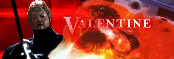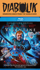 warm about the film with memories about her thoughts on the role, Boreanaz being a good sport around "so much estrogen," and the mechanics of her unforgettable final scene. In "The Final Girl" (13m54s), whose title is itself a pretty huge spoiler, Shelton goes into her affinity for the horror genre, her thoughts on being the audience surrogate figure, and the "very '90s" elements of the film like the speed dating scene. Then "Shot Through the Heart" (23m3s) brings in Cauffiel, who's just as enjoyable and articulate here as her piece on Urban Legends: Final Cut as she notes the film's commentary on modern dating, female friendships, and the benefits of doing a scene with a good kisser. Then co-writers Gretchen J. Berg and Aaron Harberts appear in the epic-length "Writing Valentine" (64m33s) explaining how a spec script got them on the studio's radar, wound up coming on for a rewrite gig on this one after the original version ended up being unusable, and an in-depth explanation of how the set pieces evolved once they were given the blessing to write the final product. In "Editing Valentine" (27m50s), editor Steve Mirkovich talks about tackling this film after a run of John Carpenter projects and gladly jumping into a Warner Bros. horror film after being influenced by their output in the early '70s. Finally, "Scoring Valentine" (11m53s) has Davis noting how the horror genre allows for greater experimentation and use of new technology in composing music, with Blanks' own compositional skills coming in handy creating a sync between them. That's not all though; there's also a huge reel of behind the scenes footage shot on VHS (114m21s) with extensive coverage of the cast and crew at work throughout the production, including lots of fun stuff with the Cupid costume. An extended reel of interviews for the EPK (17m21s) features plenty of additional outtake comments from the cast, and you also get a teaser, a reel of TV spots (1m23s), a still gallery, and best of all, the surviving deleted scenes (8m40s) from a VHS time-coded workprint, featuring some extra character development and, more importantly, the more violent kill scenes in their original form. A barely hidden Easter Egg (1m6s) addresses that aforementioned similarity to Alone in the Dark from an unexpected source, too, in a highly amusing fashion.