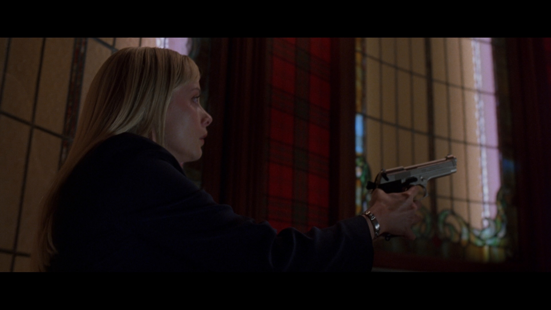 2001 DVD release was solid for the time with a transfer that handled the intense shades of red about as well as NTSC could, with a nicely atmospheric Dolby Digital 5.1 track and optional English subtitles. Extras include an audio commentary from Blanks which goes through the mechanics of each suspense sequence and elaborates on the oft-reported story about how Warner Bros., skittish in the aftermath of Columbine, ordered the removal of the stronger violent intensity even after the film was well within R-rated territory. The other supplements include the moody theatrical teaser, a video montage to a song from Orgy, and some disposable studio PR pieces (7m59s) passed off as a featurette.