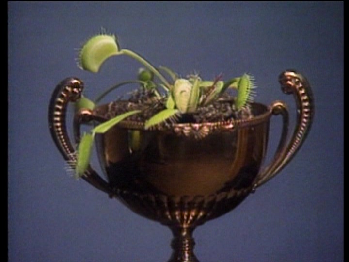 entertaining, Venus Flytrap doesn't overstay its welcome at just over an hour and delivers plenty of sleaze value, with pretty much the entire cast going naked at some point. (Malis, the biggest exhibitionist of the bunch, would go on to host four volumes of Jones's popular Movie Buff VHS line at the end of the decade.) It's odd how much Jones's script ladles on the homophobic slurs and gay panic moments, especially when you consider he was dropping Fright Night's Stephen Geoffreys in the middle of Hunk Hotel a few years later; however, it makes sense if you look at it as a kind of over-the-top parody of masculinity with Malis taking the foul-mouthed David Hess character from the Italian film into even more exaggerated territory. The dark, neon aesthetic actually works pretty well for the lo-fi video shooting, with the decor and hairstyles screaming '80s so hard it becomes an instant, lovable time capsule.