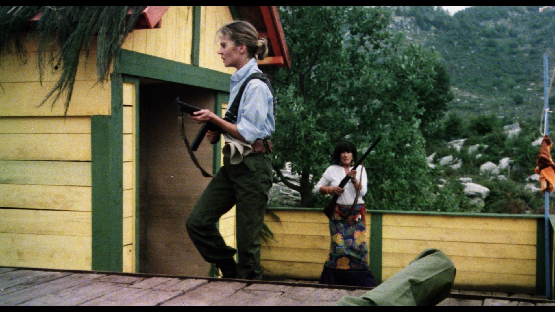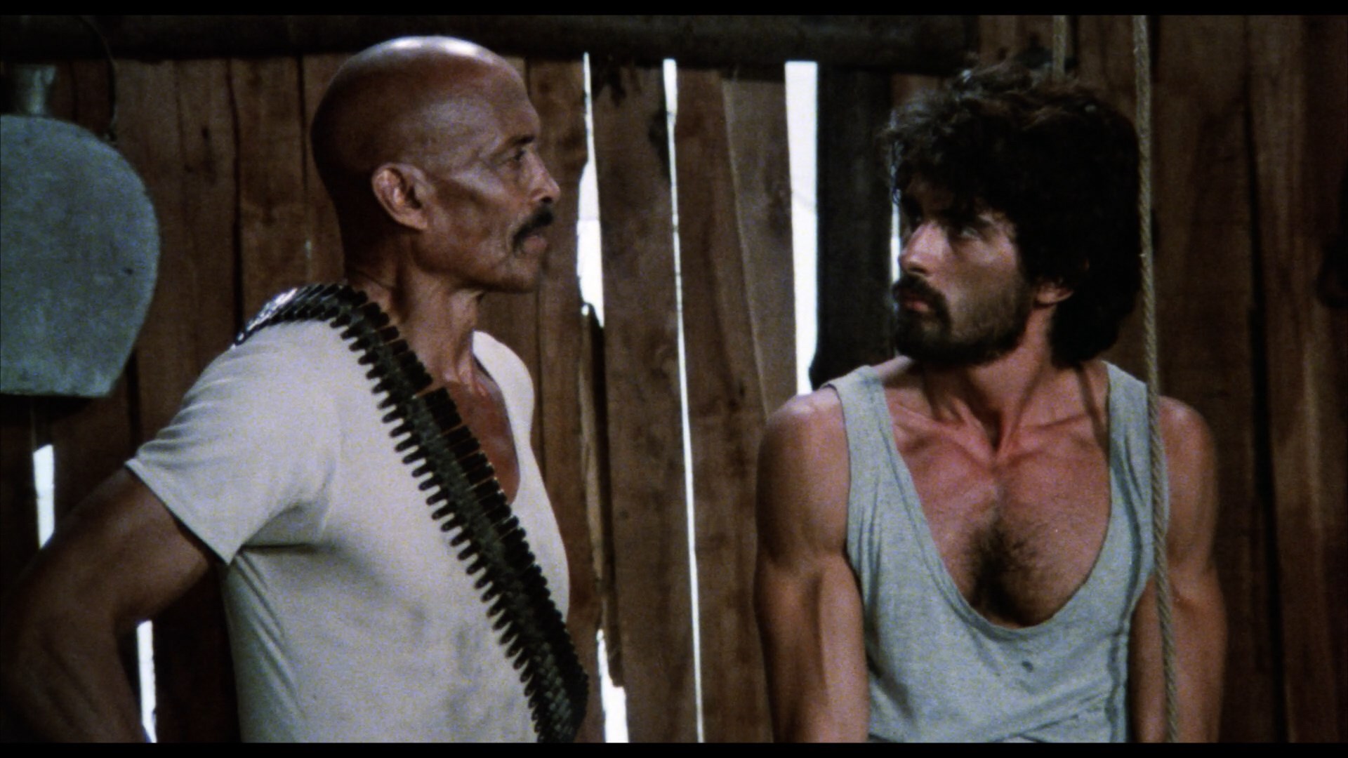 Anyone expecting to see top-billed Silva should be aware that, after taking a bullet in the opening minutes, he spends what little is left of his screen time mostly sitting behind a desk following the progress of Muller, the real star of the film. However, Strode gets a ton of screen time as well as a somewhat complex character, while Yor: The Hunter from the Future's Carole André gets a far bit to do as Muller's girlfriend. Speaking of Muller, the showbiz heir was one of several American actors earmarked for Italian action movie stardom around the time; however, he's easily the most enigmatic of the bunch since he disappeared from the public eye entirely at the end of the '80s after making less than a dozen films. The role doesn't require him to stretch many acting muscles, but he's fine running around shooting at stuff once the action finally kicks in around the one-hour mark. The film itself is obviously very cheap and ragged (a clear paycheck gig for Di Leo) with some insane cost-cutting tactics on display, but if you love chintzy Euro shoot-'em-ups, that might be a big selling point.