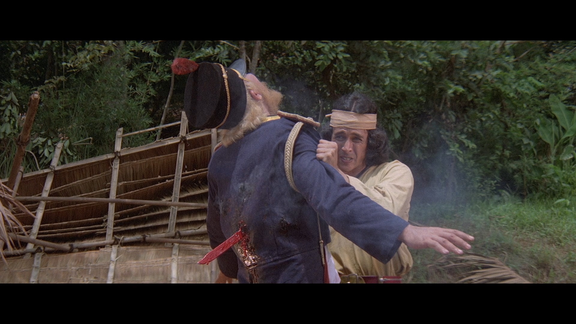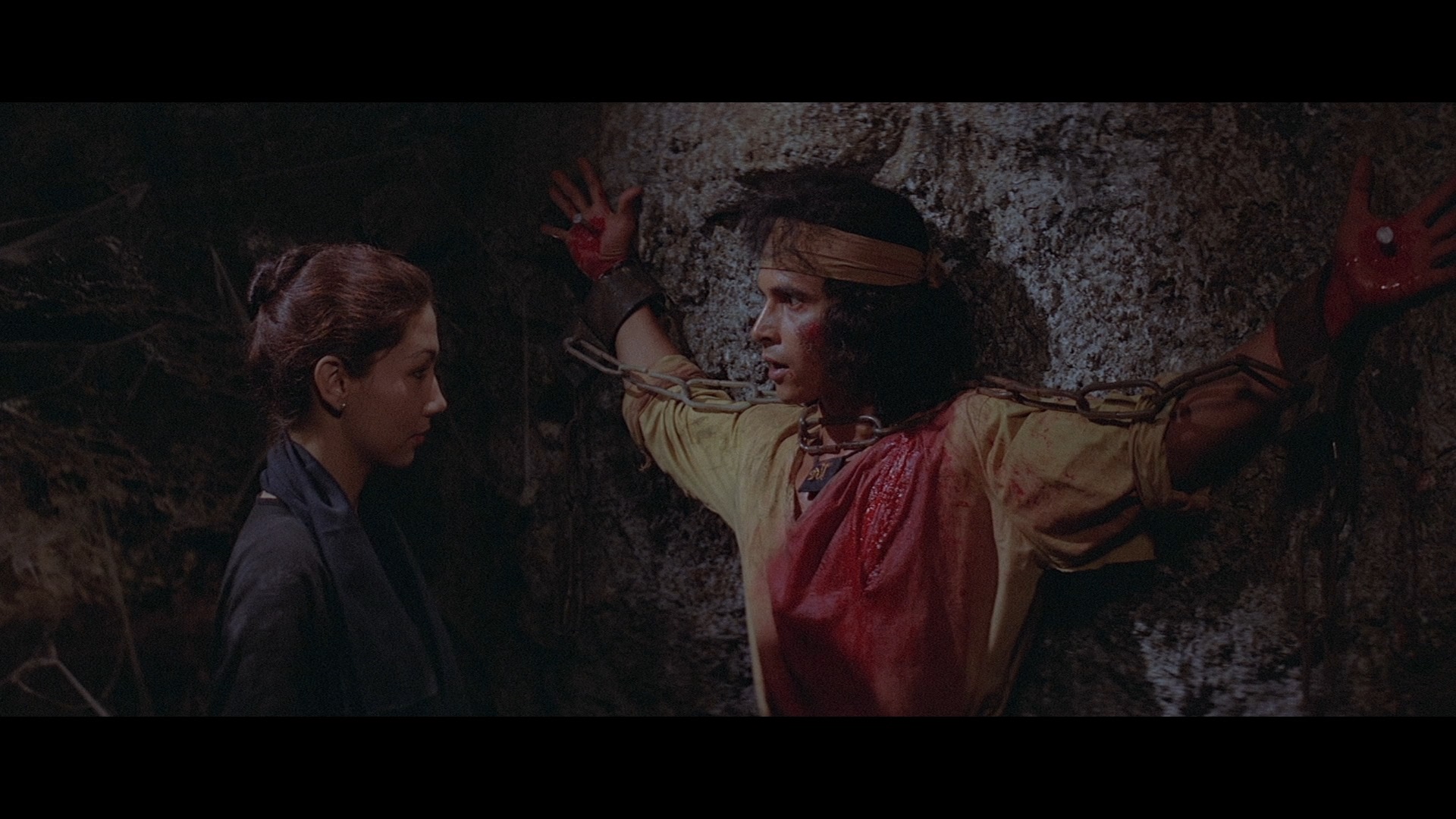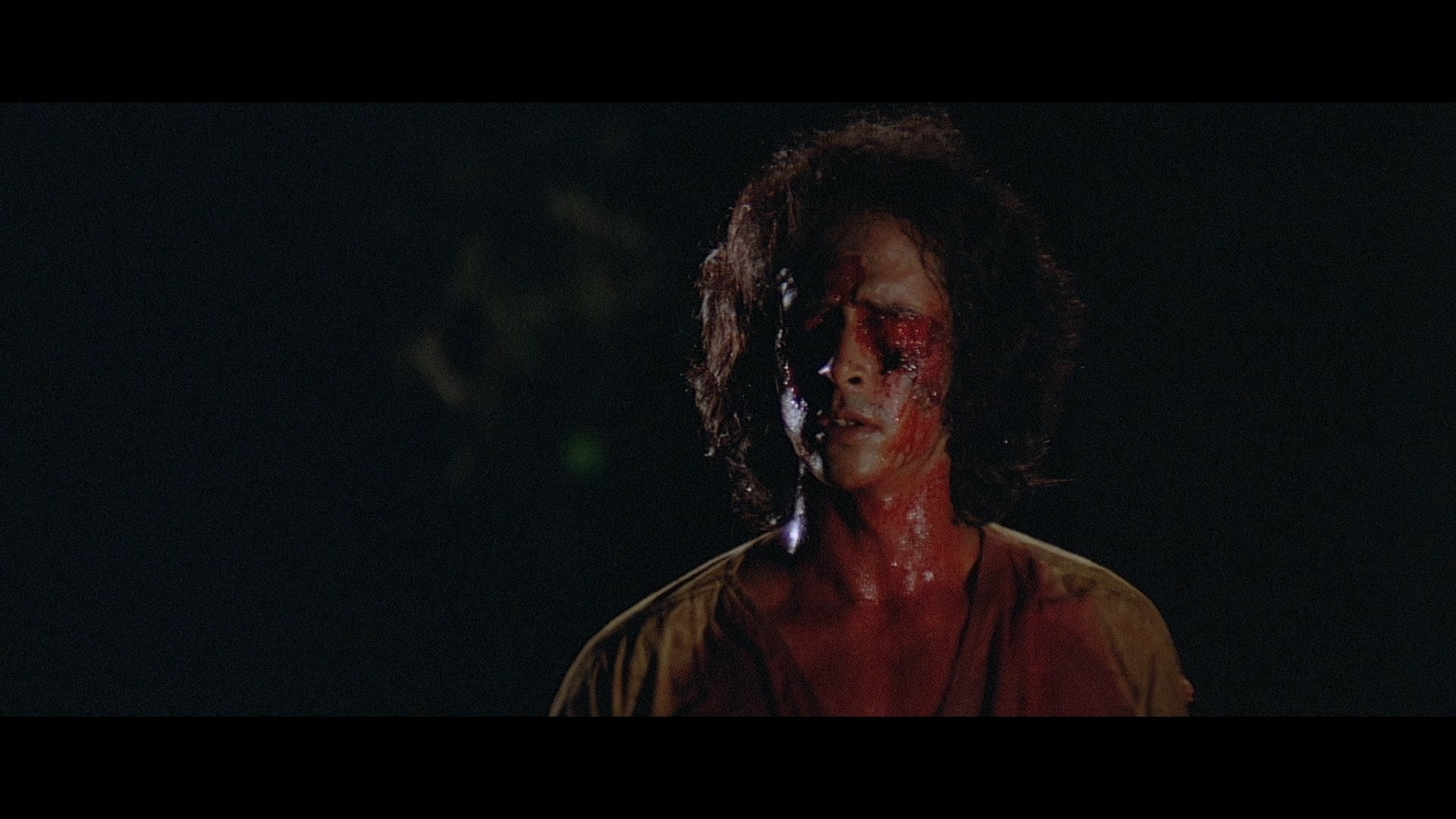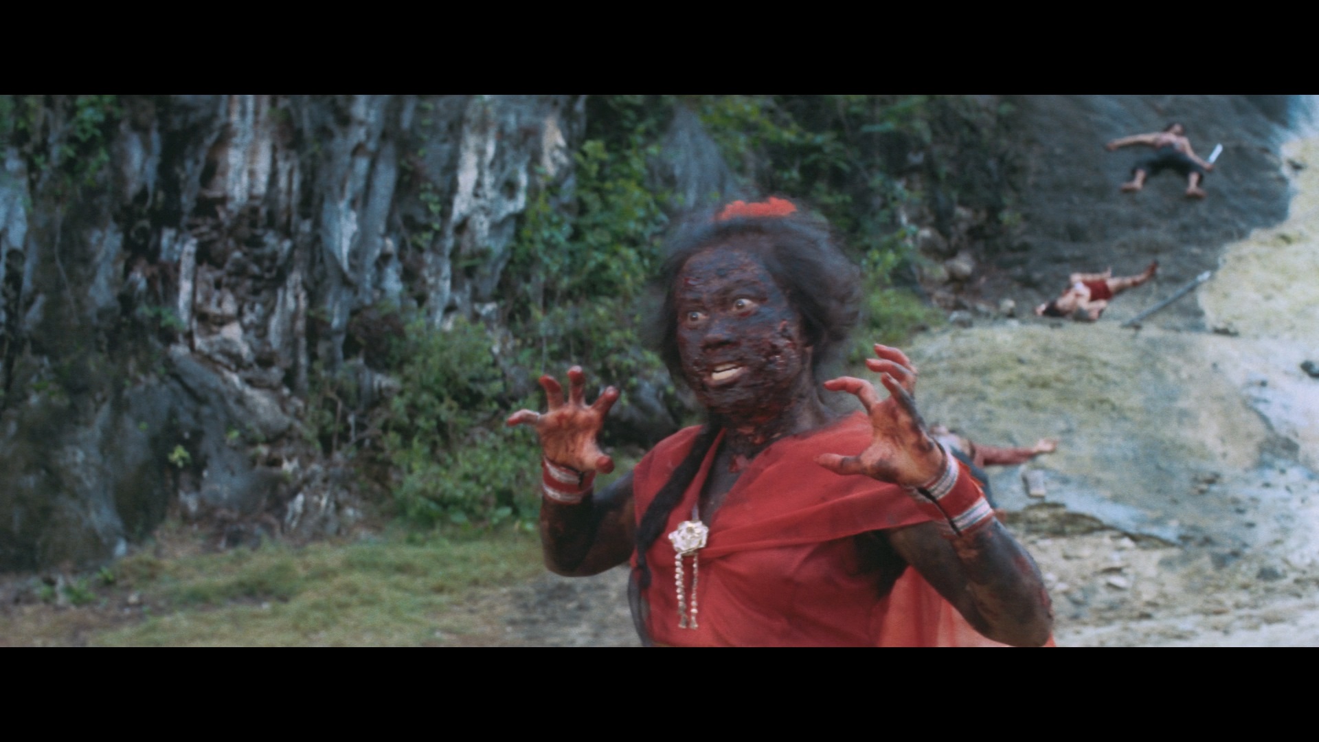 In 2024, Mondo Macabro finally revisited the film as part of a direct-sale, two-disc Blu-ray set or two separate Blu-rays for general retail. The Warrior gets its own disc, of course, and looks better than the already sterling DVD with better detail and obvious upticks thanks to the resolution increase. Color-wise it's about the same, though there are some minor framing variations throughout as you can see below. Sometimes the DVD shows a little more, and other times the Blu-ray edges ahead, though not dramatically so in either case. In addition to the usual English DTS-HD MA 2.0 mono track, here you also