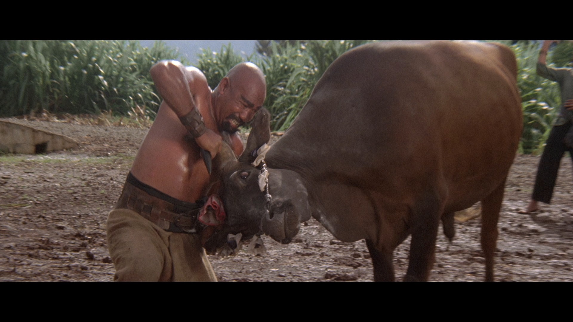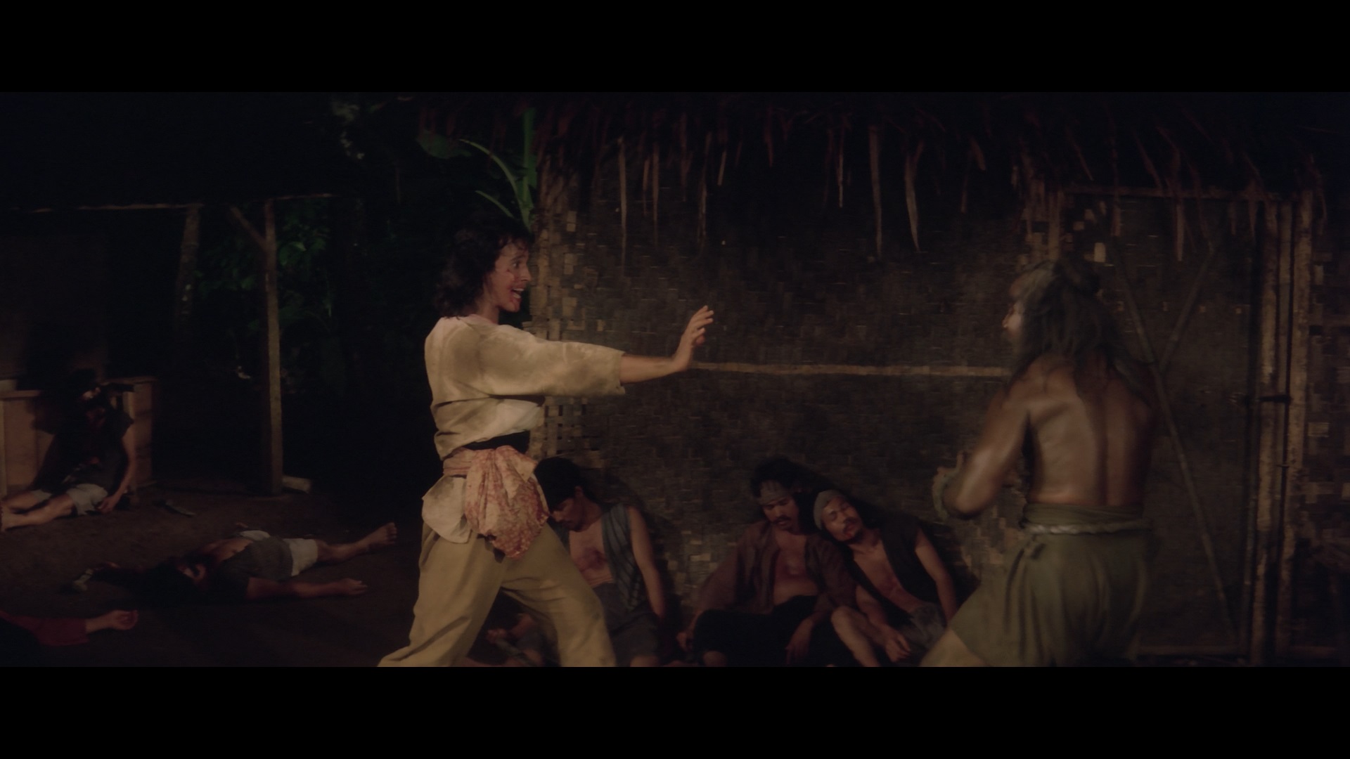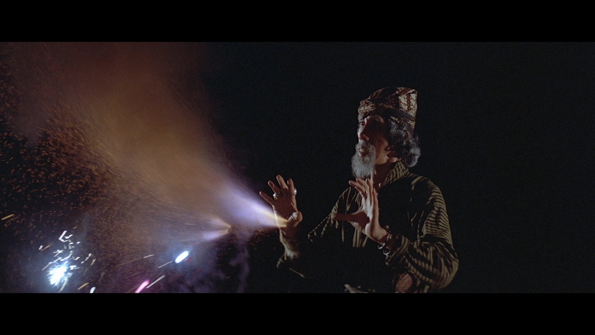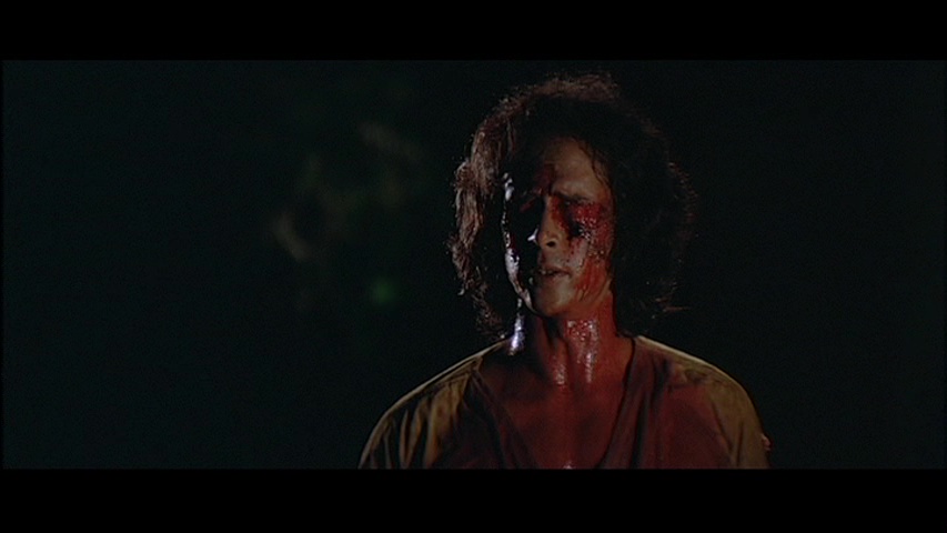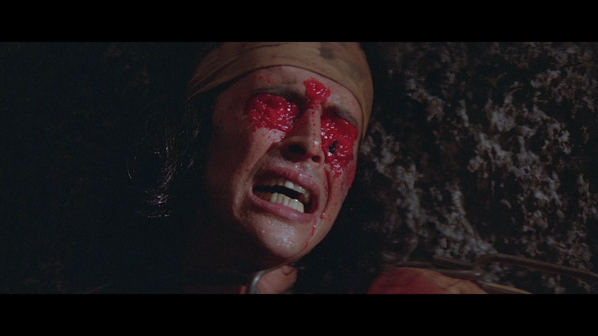In 2024, Mondo Macabro finally revisited the film as part of a direct-sale, two-disc Blu-ray set or two separate Blu-rays for general retail. The Warrior gets its own disc, of course, and looks better than the already sterling DVD with better detail and obvious upticks thanks to the resolution increase. Color-wise it's about the same, though there are some minor framing variations throughout as you can see below. Sometimes the DVD shows a little more, and other times the Blu-ray edges ahead, though not dramatically so in either case. In addition to the usual English DTS-HD MA 2.0 mono track, here you also