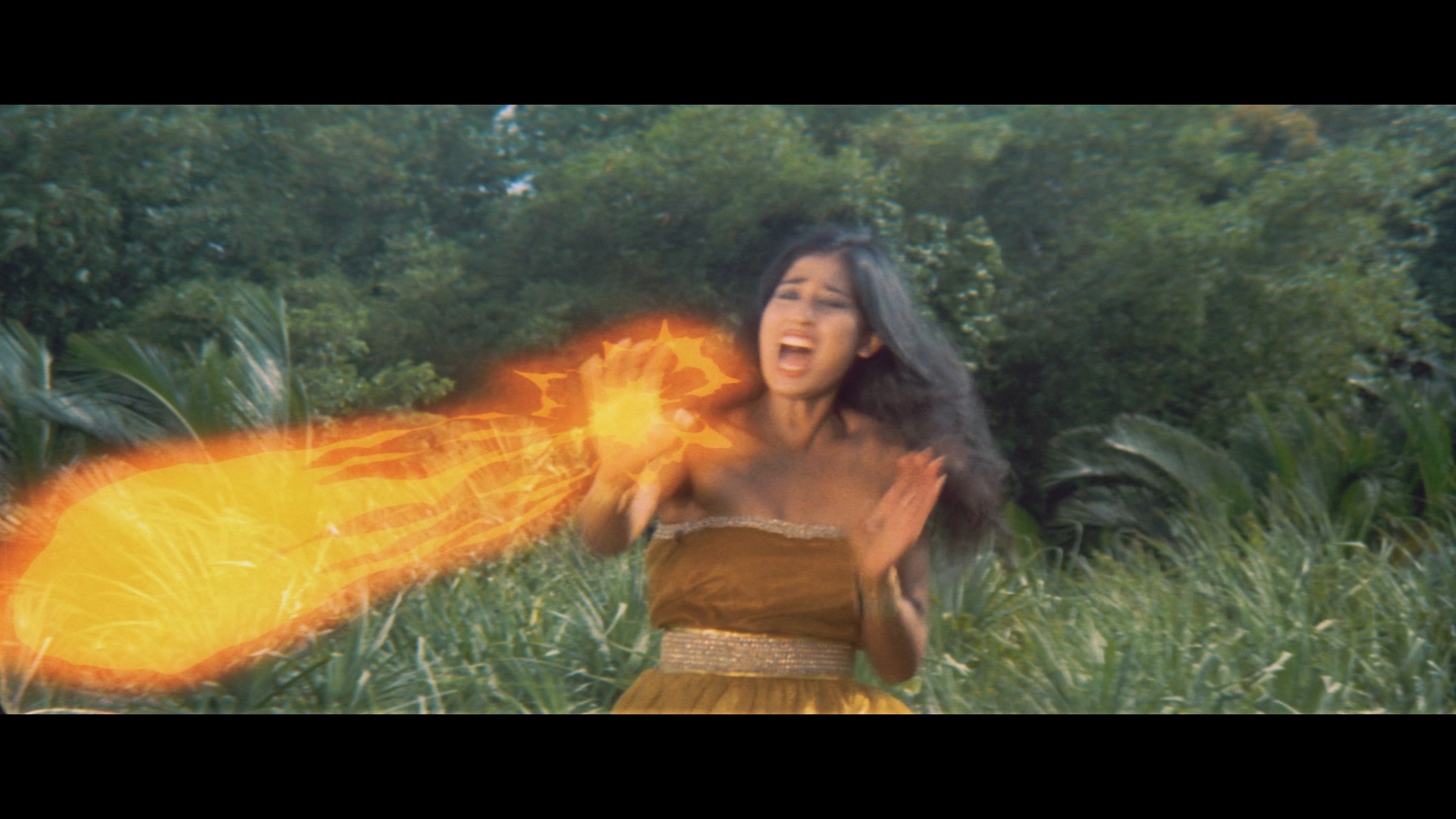 ninja who, being a woman, doesn't make for a likely suspect for whoever's been robbing all the rich folks and giving out money to the poor. Suspicion falls on Jaka instead, and with a hulking supernatural guy stalking them after popping out of that volcano, things get crazy very quickly. The second half of this film is basically one fight scene after another with a barrage of gruesome gags, but nothing compares to the spectacle of the big climax in which Black Squirrel... well, whatever you do, don't read the disc packaging since it spoils what might be the greatest ten seconds in Indonesian movie history. The second film looks immaculate, and in a surprising move, they actually ponied up to have it mixed in stereo with some surprisingly active channel separation that makes it a really fun treat for the ears, too. The third film hasn't been preserved as well with some obvious deterioration in a few spots, but it still looks great for the most part. Both films have their English and Indonesian audio tracks here with optional English subtitles as usual.