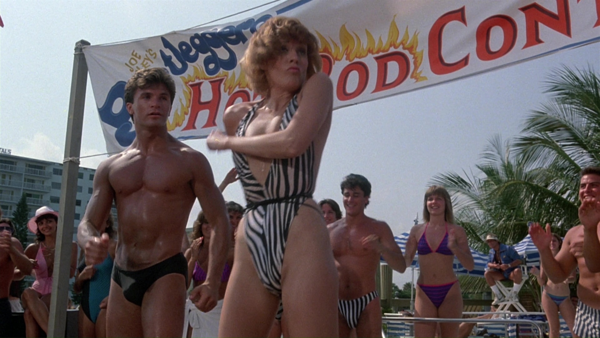 The concept is familiar here as a quartet of girls heads to the beach for some fun and lovin' in the sun, despite the fact that they're stuck in a low-rent and rowdy dive. Inexperienced Jennie (Deadly Blessing's Hartman) is torn between struggling new wave musician Scott (Friday the 13th Part 2's Todd) and pampered rich boy Daniel (Daniel McDonald, Christopher's brother); slutty Laurie (For Your Eyes Only's Johnson) runs after anything in pants and gets to browbeat a male hustler; Carole (Luft) is recovering from a recent split; and debutante Sandra (Schaal) finds out the hard way she can't hold her liquor and winds up in jail. To spring her, Carole enters a Hot Bod contest on the beach and (hilariously) comes in second place, followed by a speedboat raid that disrupts a high society mansion mixing senior citizens and bondage participants and the obligatory musical climax.