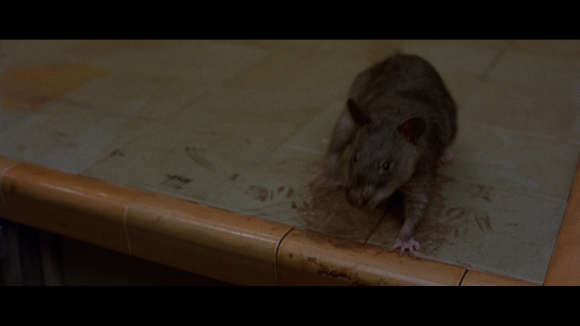 Willard appeared on DVD fairly quickly after its theatrical run as a typical stacked New Line release, a flipper disc with a widescreen (16x9) version on one side and full frame on the other. Like many of New Line's dual-sided discs, it appears most or all copies became unplayable within a decade and are now only useful as coasters or Christmas tree decorations. In 2019, the film made its very belated Blu-ray debut from Scream Factory with all the pertinent extras ported over and a drastically improved transfer sourced from a 2K scan of "original film elements" (likely an interpositive based on past Warner catalog titles). It's a visually aggressive film with lots of bright colors, deep shadows, and burnished textures in almost every scene, and the transfer does a solid job of capturing the look and appears more vibrant than it looked in theaters. The DTS-HD MA 5.1 English audio track (with optional English SDH subtitles) is also solid with particular support given to the score. Ported over from the DVD is an excellent audio commentary with Morgan, producer James Wong, and Glover and Ermey, with lots of stories about the casting, little hidden touches (watch those opening credits), the logistics of working with rats, little plot points that had to be fixed with looping, shots excised from the final cut, and more. However, you also get two new commentaries, kicking off with a new track with Morgan and McLachlan in conversation with Justin Beahm. They're still quite proud of the film and fond of it as they look back with more production stories with a bittersweet perspective and note that they wish they'd kept the film R-rated as originally intended versus the PG-13 it bears now. It's also interesting to hear them in the wake of Black Christmas, which gets quite a few mentions as well. Beahm returns to moderate a really informative and fun commentary with animal trainers Mark Harden and David Allsberry of Animals for Hollywood, who talk about how they got into the business and trained hundreds of rats to do specific tasks on this film ("I could make peanut butter look like anything"). It's quite a change of pace from your usual commentary and a rewarding listen as they share lots of tips about turning animals into movie stars.