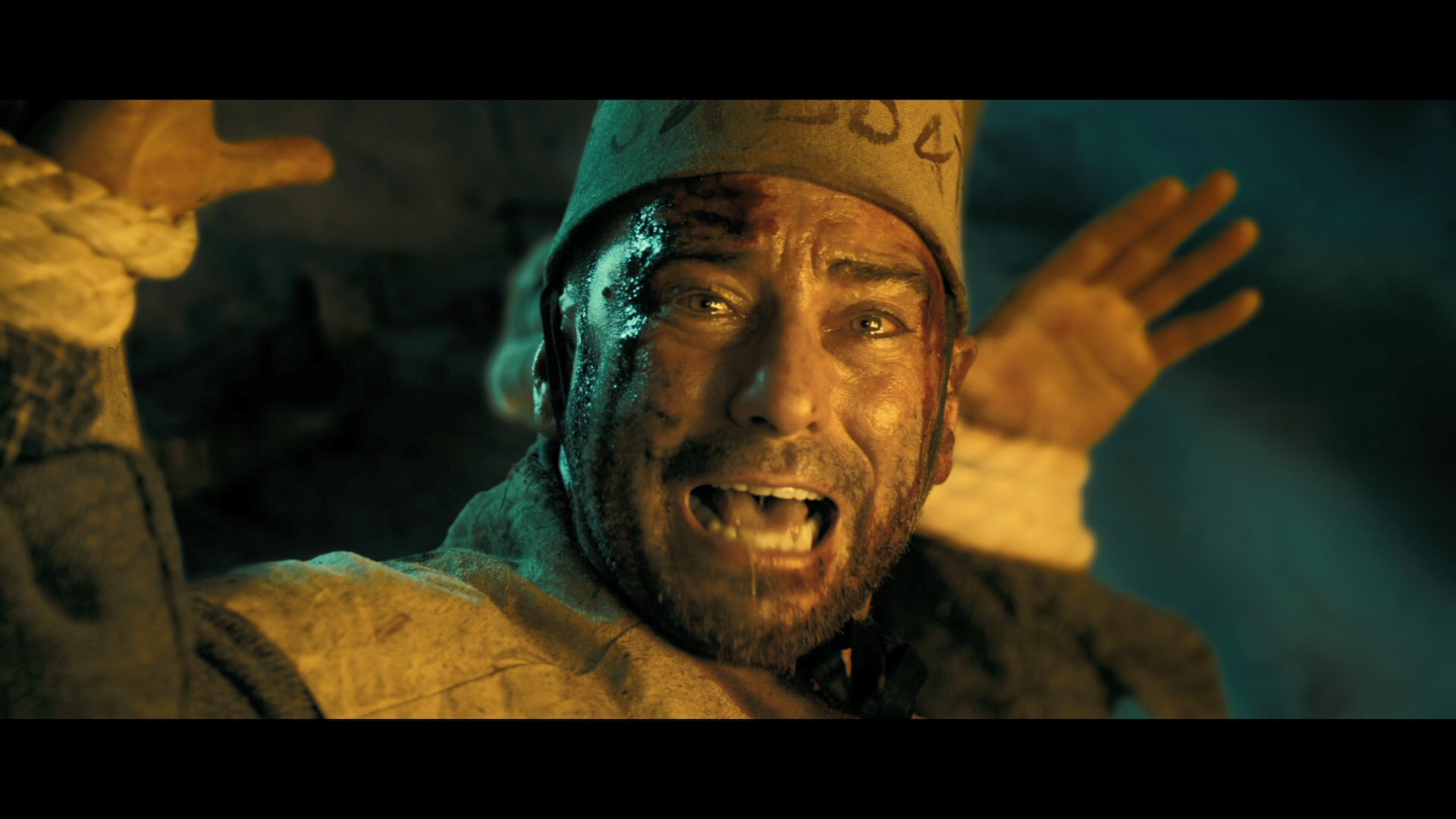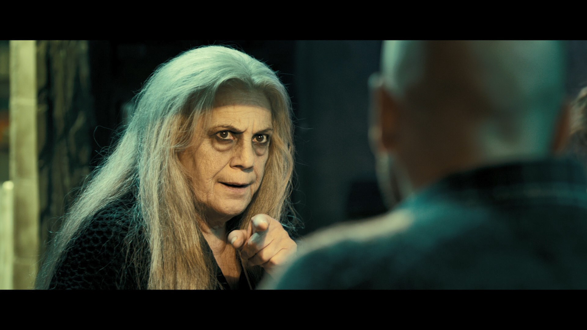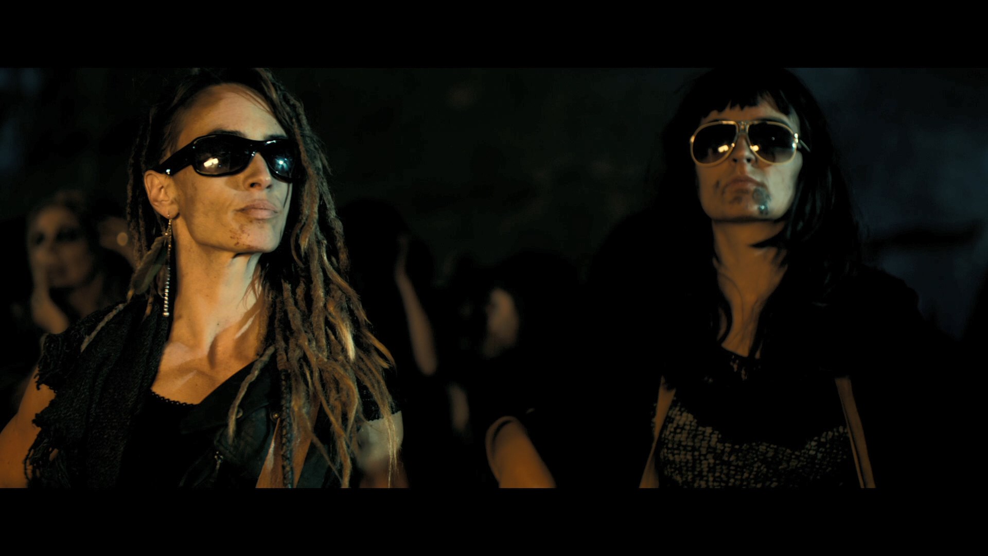 which is good news as that was already a solid presentation that preserved the film's stylized and sometimes extreme color schemes with an emphasis on gold throughout. Audio is presented in Spanish DTS-HD MA 5.1 and PCM 2.0 stereo options; stick with the former as it's way more dynamic and has lots of fun channel separation, with optional English, English SDH, and Spanish subtitles included. Though it isn't designated on the packaging, the disc also features three promotional featurettes: "The Story" (2m44), essentially an EPK-style collage of production footage and an interview with the director; "The Characters" (4m6s) featuring de la Iglesia chatting about his conception of the protagonist and the conflict he finds himself in, again with some behind-the-scenes footage; and "Heist in Puera del Sol" (2m59s), covering the filming of the insane opening robbery scene. The subtitled IFC trailer is also included.