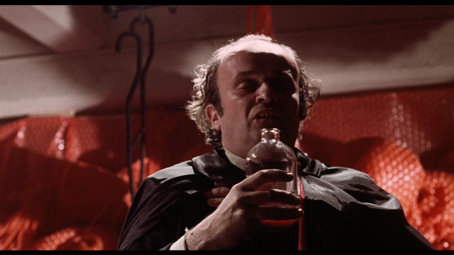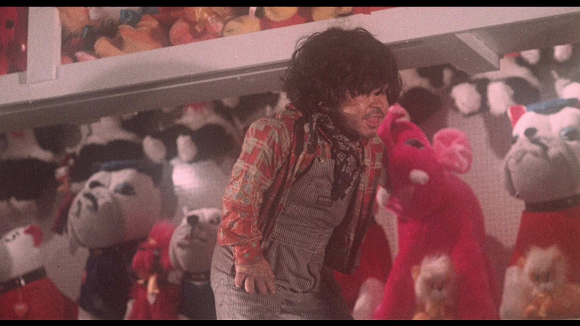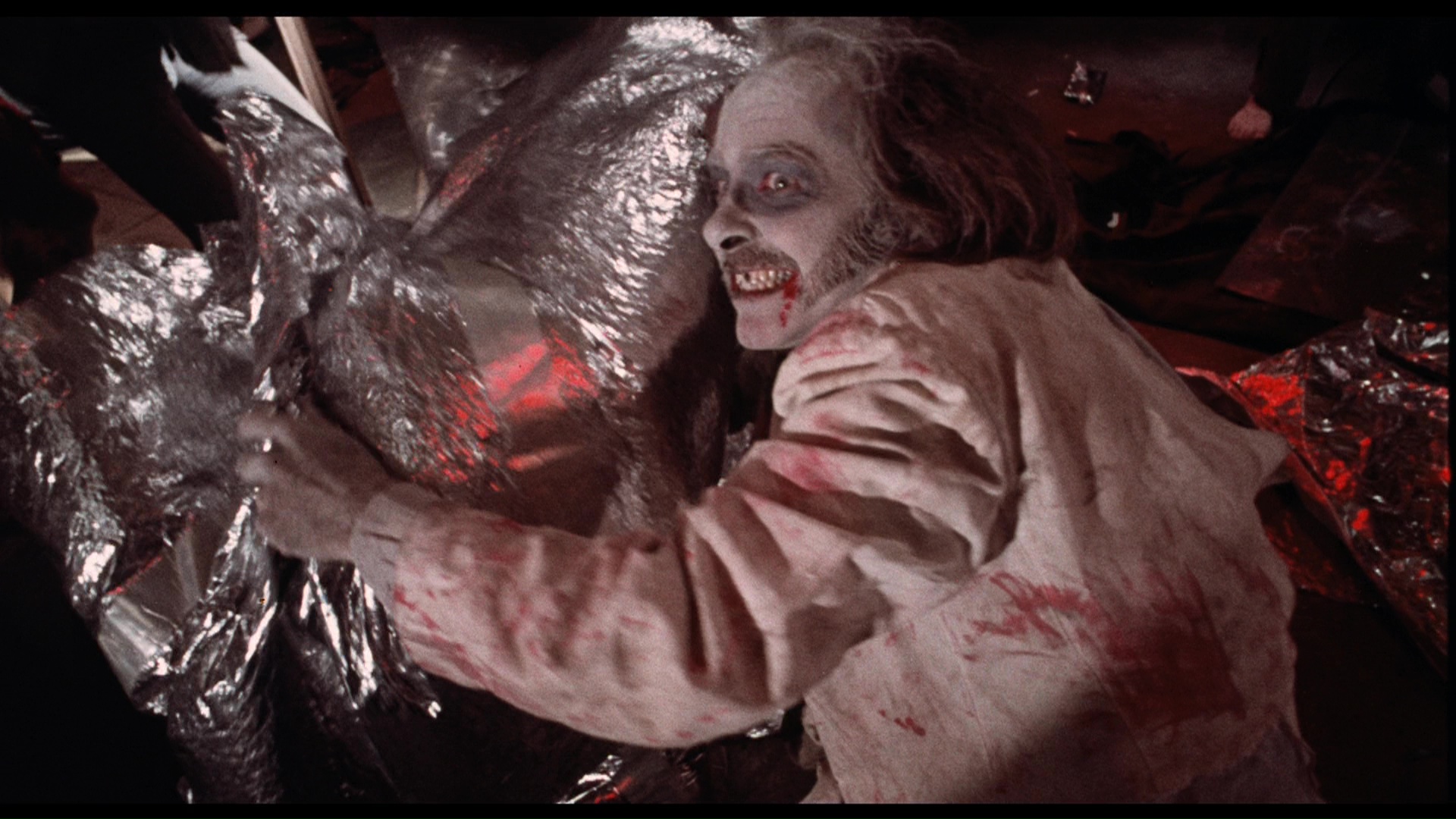 courtesy of producer Richard Grosser, and how they were given carte blanche with both the empty factory space for their interiors and the striking, rundown carnival (now a shopping center) for the rest. Pay attention to the story behind that decorated drum next to Speeth, too. In "Crimson Speak," writer Werner Liepolt gets 12 minutes to explain how a certain notorious real-life maniac inspired his script and what he thought of the creative process bringing it to the screen, while the 10-minute "Malatesta’s Underground" explores the film's unique environment courtesy of copious production drawings and interviews with art directors Richard Stange and Alan Johnson. The outtakes reel is carried over here in better quality, and a stills gallery is also included along with a pdf of the script as a DVD-Rom or Blu-ray extra.