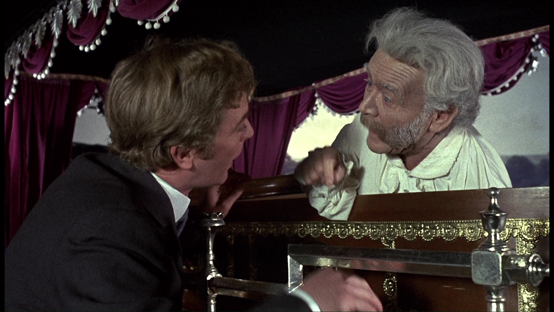 Available on all major home video formats over the years including a pressed DVD in the U.K. and an MOD DVD in the U.S., The Wrong Box never had a special edition of any kind until the 2018 region-free Blu-ray from Indicator. Sony's HD master is in typically tip-top shape and looks splendid here with the 1.75:1 framing appearing accurate for a film that's shifted slightly in aspect ratios over the years. A very lively new audio commentary with Josephine Botting and Vic Pratt shows great affection for the film as they tackle the film's diverse mixture of comic styles, the interesting reactions to casting working class Caine as a posh adopted med student, the logistics of shooting real exteriors that could pass for the period mixed with Pinewood interiors, the cavalcade of notable faces in big and small parts, and the changes made to the source material. The film can also be played with a career-
