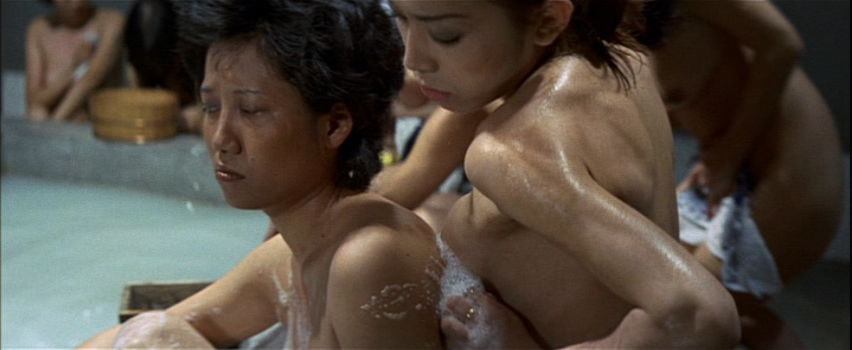 The very first batch of Impulse's Nikkatsu films featured one especially grungy offering, True Story of a Woman in Jail: Sex Hell, from 1975. Well, guess what? Poor Mayumi from that first film (still played by Hitomi) is still behind bars and in deep trouble, sulking out of solitary into a world where the inmates are repeatedly strip searched and forced to wade through a room-length cleanser spray that looks like blood. Her new neighbors get a kick out