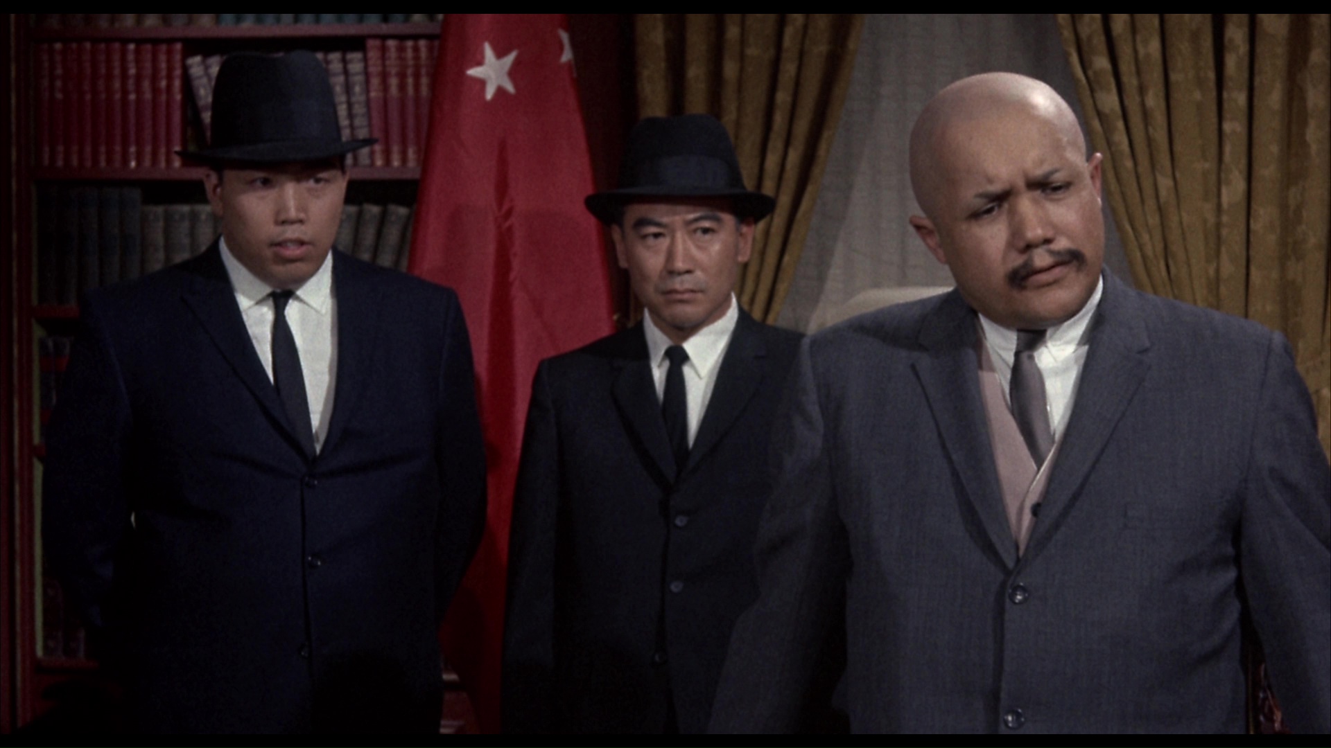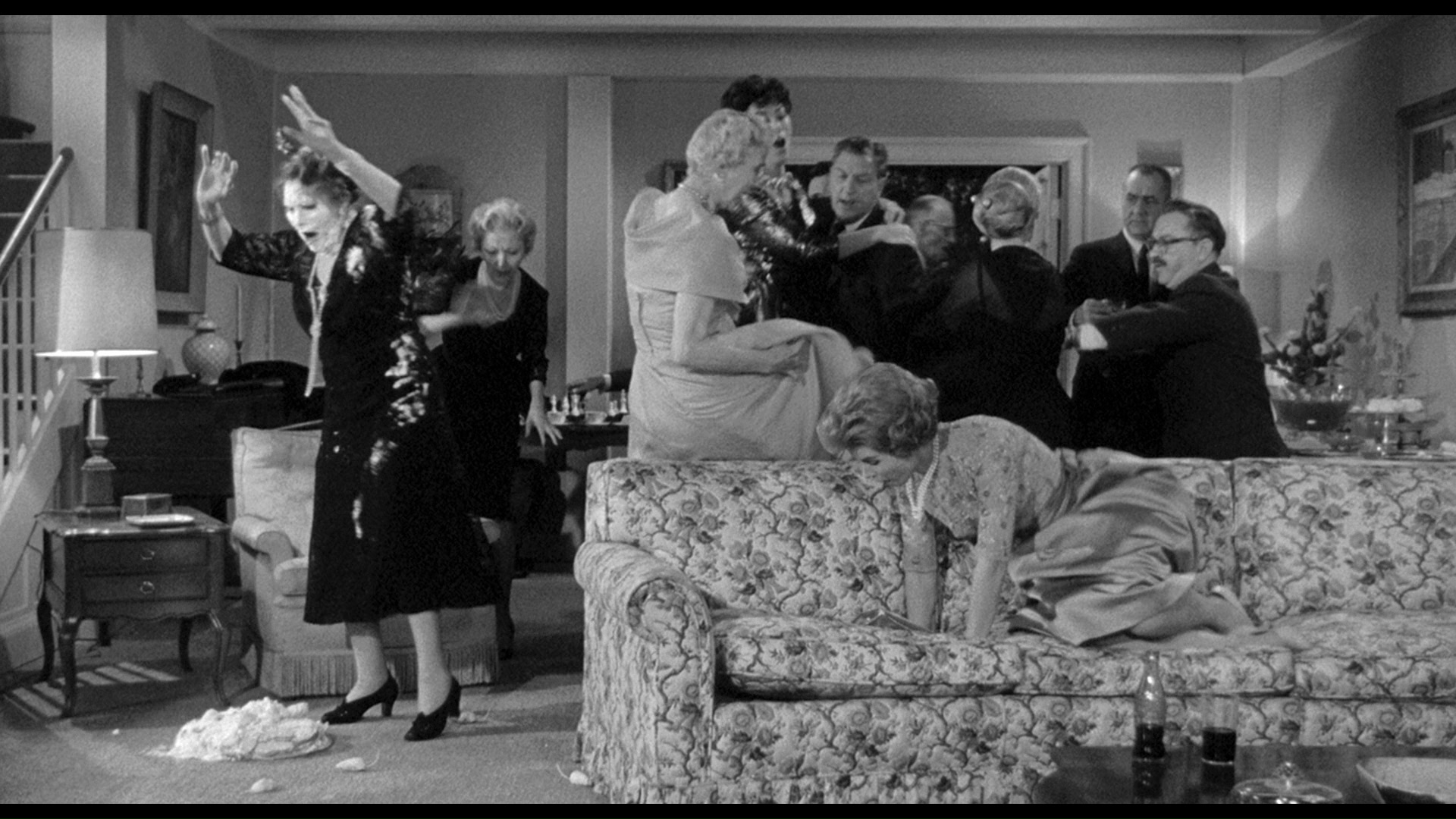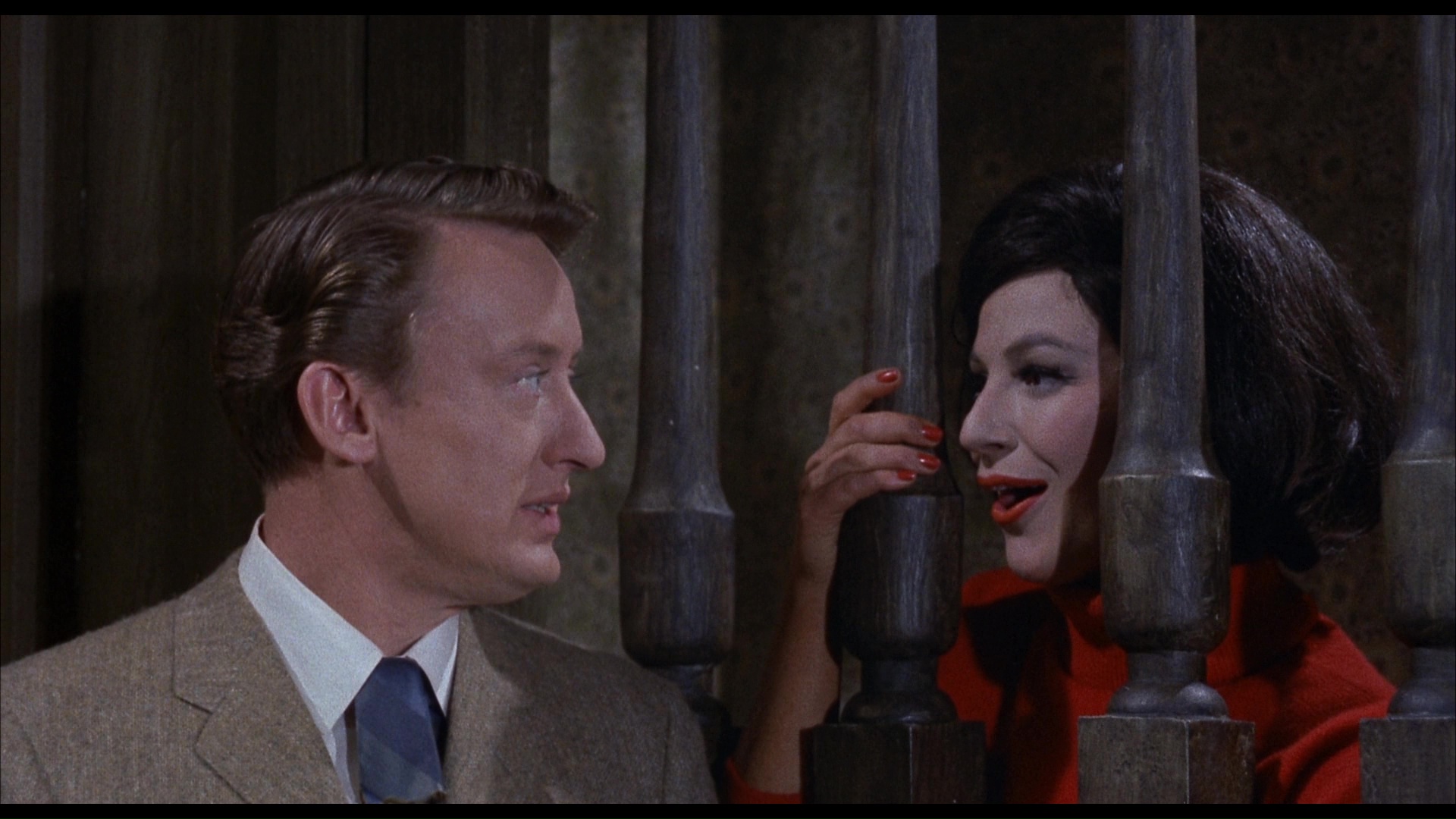 First up is the quirky comedy fantasy Zotz!, which marked the first of two vehicles designed with Tom Poston as an unlikely leading man. Later to achieve TV immortality including a lengthy stint on Newhart, Poston is cast here as Professor Jonathan Jones, who specializes in ancient and often completely forgotten languages. When he gets his hands on a mystical coin, he discovers that saying the titular word and/or pointing his finger in the right combinations can slow down time, inflict pain, or even cause death. Though he tries to keep his discovery under wraps, he soon attracts the attention of academic rival Horatio Kellgore (Backus) and eventually the U.S. Zotz!government. Zotz!Slapstick mayhem ensues with a couple of Russian agents involved for good measure. Anyone who's seen Castle's comedies knows he likes to go broad and play around with elements like film speed and audio manipulation, and you'll find plenty of that in evidence here even if the end result isn't really funny in the conventional sense. In fact this film marked a shift of sorts after the previous year's Mr. Sardonicus, Castle's darkest and moodiest shocker to that point, introducing a broad approach that Castle would return to later in such films as The Spirit Is Willing, The Busy Body, and the very next film he made with Poston the following year. But more on that in a moment.