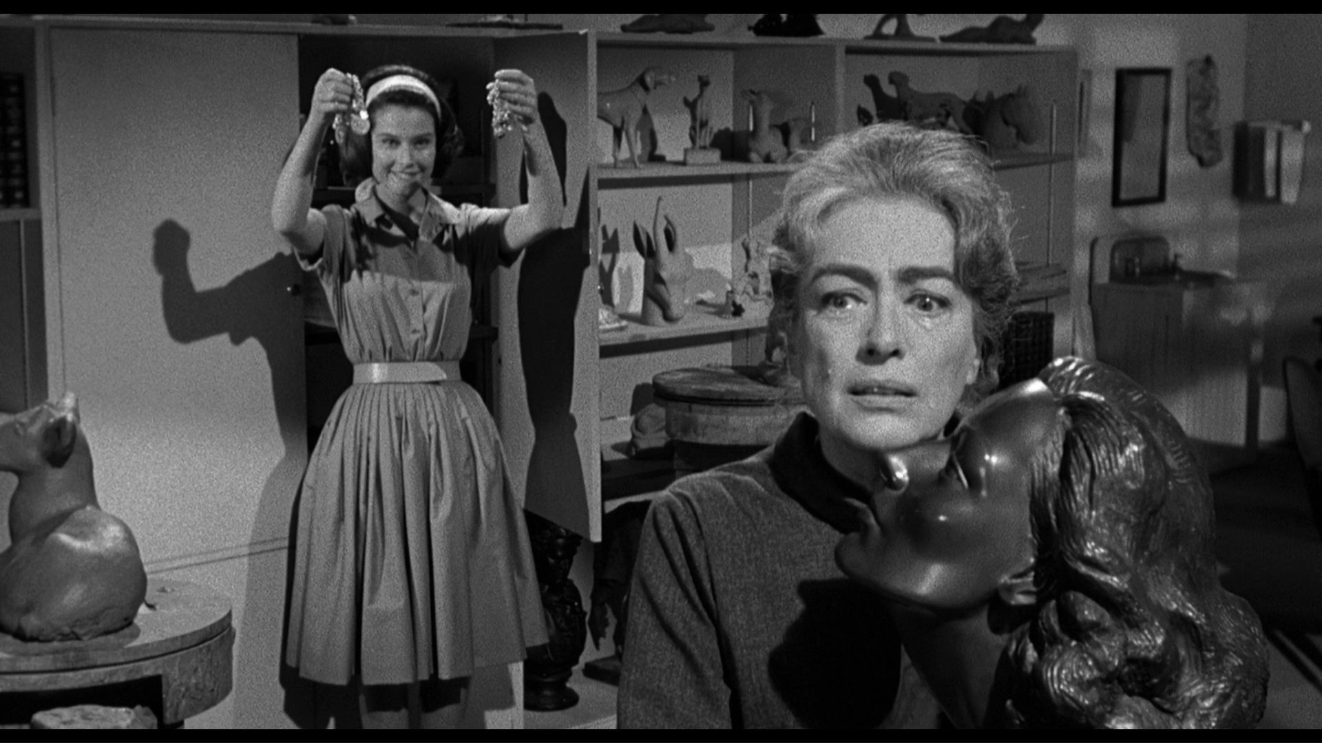 The Old Dark HouseFinally we get to the most beloved film in the set by far, Strait-Jacket, Castle's second Psycho-inspired shocker (following the outrageous Homicidal). This one also found him working for the first of two times with Joan Crawford as his leading lady, cast here in what was obviously a riff on her sympathetic but not entirely sweet character from the recent hit, What Ever Happened to Baby Jane? On top of that Castle managed to land Psycho author Robert Bloch, with whom he would reunite soon after for The Night Walker. What's perhaps most surprising is that the end result is actually more like a modernized version of Crawford's popular "women's pictures" from the '40s and early '50s, especially Mildred Pierce, with some axe-swinging horror seasoning sprinkled on op. A night of jukebox socializing turns into a bloodbath when Lucy (Crawford) catches her husband (an uncredited Lee Majors) enjoying a post-coital slumber with his fStrait-Jacketemale companion for the night. Out comes the ax and off goes his head, which lands Lucy in an asylum for two decades. Lucy's sculptor daughter, Carol (Baker), witnessed the whole thing as a young child but has a positive attitude about having her mom back under the same roof, even going so far as to break out her old jewelry to celebrate old times. Soon people in their lives are getting hacked to death, with all Strait-Jacketindications pointing to Lucy... but is there more here than meets the eye? Wildly entertaining, melodramatic, and loaded with peculiar plot twists including a Scooby-Doo-worthy ending you won't believe, Strait-Jacket is roaring good fun from start to finish with Crawford earning every single penny of her paycheck here. It's overripe, sweaty, trashy, and ridiculous, which means it's also prime Castle and very rewarding on multiple viewings.