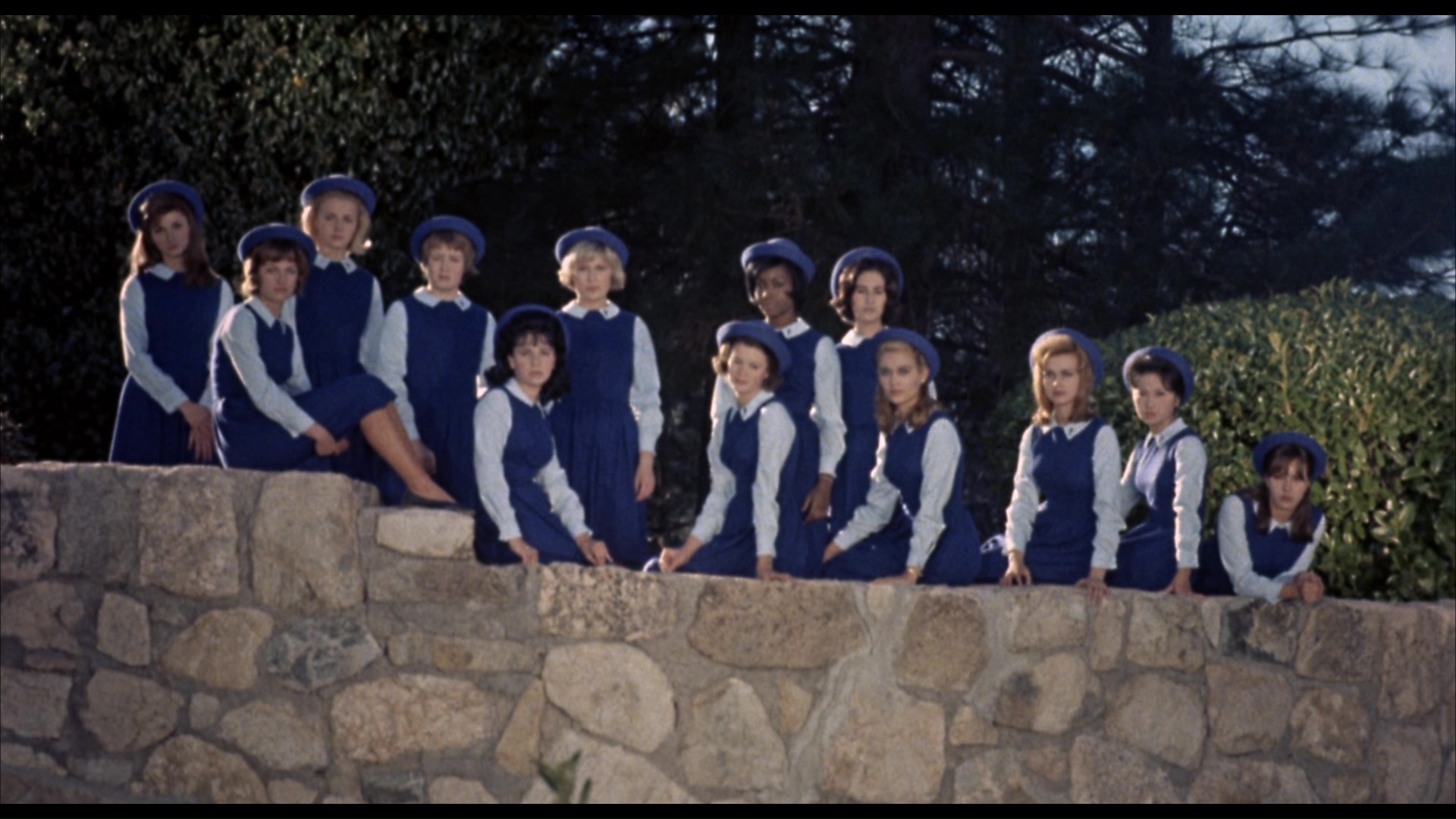 Zotz! didn't give Castle the opportunity to exploit his penchant for gimmicks much beyond handing out coin replicas to patrons and playing around a bit with the opening Columbia logo, so he decided to go global with his next film, the equally strange 13 Frightened Girls. Originally shot as The Candy Web and released under that title in some territories, this lightweight thriller takes place at a Swiss boarding school, Miss Pittford's Academy, where intrigue ropes in a group of pubescent 13 Frightened Girlsgirls from 13 Frightened Girlsaround the world whose fathers are prominent diplomats. That gave Castle the chance to cast young actresses from a number of countries and give each of them a spotlight, right down to shooting different openings with several of them taking turns driving the bus in the opening scene. The idea was that audiences worldwide would flock to see their own recently discovered local celebrity up on the big screen, though the gambit didn't really pay off much beyond drawing in the reliable number of matinee kiddies. The focus of the story is Candy (Dunn), the love-crazed daughter of a U.S. diplomat (Marlowe) and a truly rotten driver, who stumbles onto a dead body and fancies herself a fledgling spy using the code name Kitten so she can wiggle her way into the heart of another agent, the engaged Wally (Jaws' Hamilton), in her dad's office. Soon the academy is a hotbed of international intrigue as Chinese and Russian agents seem to be crawling out of the woodwork, with our heroine and some of her pals finding themselves in moderately threatening peril. Colorful and kid friendly, this one was obviously designed to ride the rising spy craze at the time (spearheaded by the James Bond phenomenon just breaking) and the spate of live-action Disney films centered around young girls, with The Moon Spinners actually taking 13 Frightened Girlsthis film's lead a couple 13 Frightened Girlsof years later. While Zotz! may have been Castle's gateway to comedy, this one is also significant as the first in a cycle of films about children getting into deadly escapades, followed by I Saw What You Did, Let's Kill Uncle, and (to a stranger and lesser extent) Shanks. Castle had dabbled a little bit with kid-friendly protagonists in 13 Ghosts, but here he really puts them center stage in what would more or less become a template for a while.