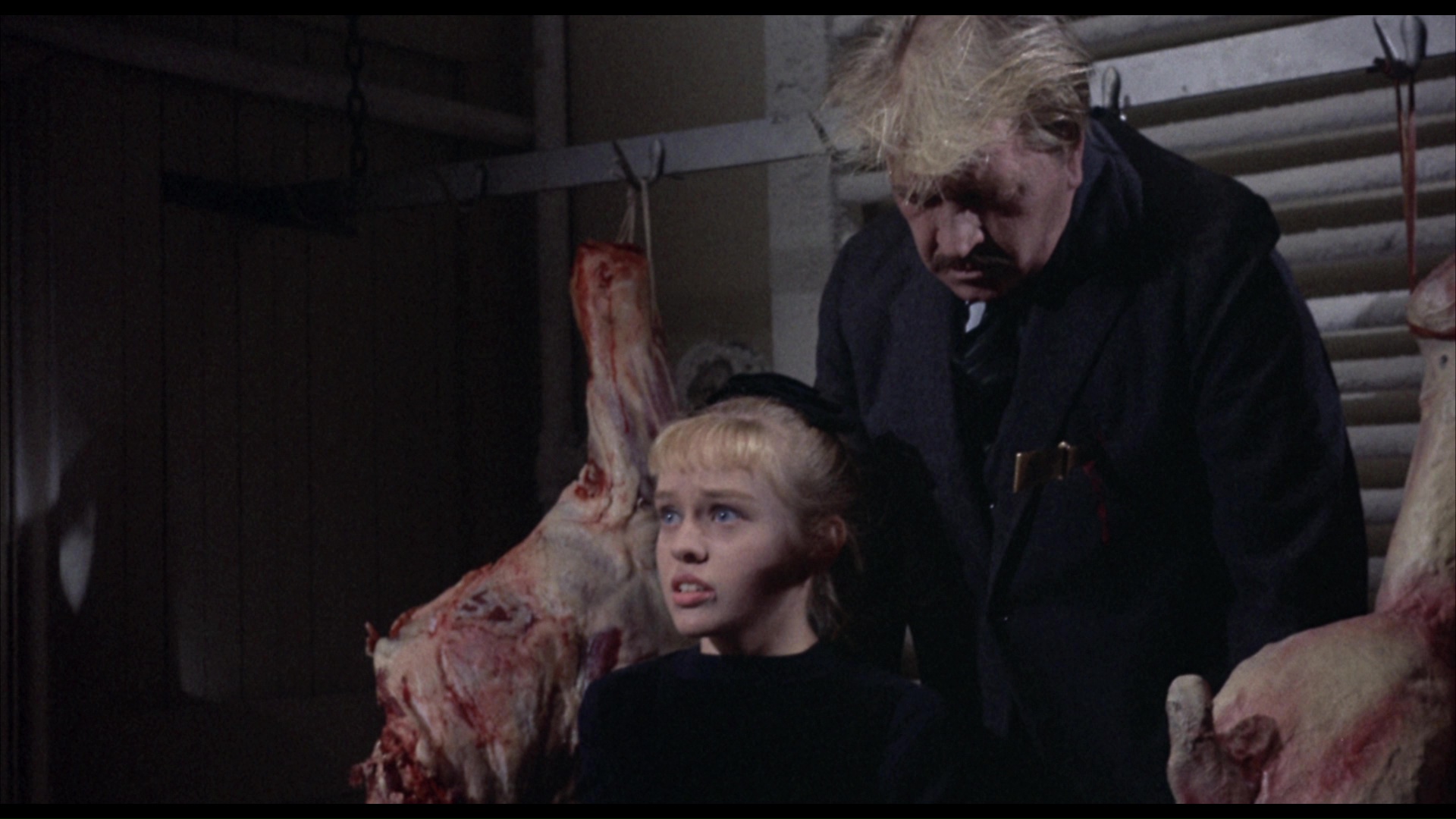 Likewise, The Old Dark House is presented in multiple versions - three! - including its U.K. (in color, as originally shot, albeit slimmed down by almost three minutes to get a kid-friendly Zotz!A certificate) and U.S. (uncut but black-and-white for some reason) along with the uncut color version that's been the standard on home video. The monochrome option actually works a lot better than you might expect, actually boasting a bit more atmosphere in some shots Zotz!even if it's a bastardization of the intended look. A new audio commentary with Kim Newman and Stephen Jones takes a classic "horror kid" approach as they go into the state of Hammer at the time, the preponderance of British stage talent involved, the maddening unavailability of the original James Whale film at the time, Castle's complete overlooking of this film in his autobiography, the peculiar double bill play with Hammer's Maniac, and plenty more. They also tie in to Tyler Perry's Medea films, believe it or not. (Also, both of the Poston-themed commentaries have a very English way of pronouncing his last time that may throw American listeners for a moment.) Classic horror scholar Jonathan Rigby tackles the film in "Not Too Spooky" (28m37s) with a thorough sketch of how the film came together with Castle and Hammer joining forces at key junctures in both of their histories with British cinema in particular becoming quite a player on the world stage. He even has some nice things to say about Benjamin Franklel's flopsweat-drenched score, which is a big stumbling block for some viewers. "House and Castle" (7m22s) with Dr. Paul Frith switches The Old Dark Housethe focus to the film's Eastmancolor lensing and the likely cost-saving measures that led to its switch in format in the U.S. In this case the gallery is split in two between stills, lobby cards and posters and then press books and promotional material.