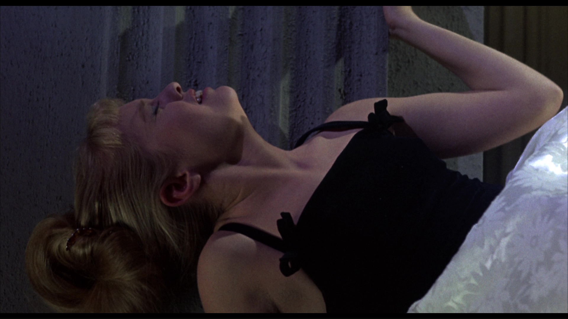All of these films have been kept in terrific shape over the years by Sony, so it's no surprise that the Blu-rays look gorgeous as well in the Indicator set. The two color films really pop with that trademark Columbia Pictures intensity and all of them are in mint condition, though Strait-Jacket as always has a grainy and gritty veneer that's a bit different from the usual Castle look. All of them sport LPCM English mono tracks, also pristine, with optional English SDH subtitles. As with the prior set, this one is decked out with a bevy of special features both old and new Strait-Jacketincluding everything from Sony's comprehensive DVD set where these films made their digital debuts. Zotz! features the theatrical trailer, an isolated music and effects track (again a great extra also present on the other discs in the set), and a gallery of stills and Strait-Jacketposters, but more substantially there's also a new commentary by Kat Ellinger touching on differences compared to the darker Walter Karig source novel, Castle's increasing desire to experiment at the time, comedy tactics common at the time, and thoughts on many other Castle films including the, ahem, interesting assertion that I Saw What You Did is more transgressive than Psycho. A video intro by Stephen Laws (6m6s) who enthusiastically recalls falling in love with this film during its initial run in England complete with enthusiastic playground buzz. "The Horror of It All" (24m) features Kim Newman chatting about the career of writer Ray Russell, a pulp writer who shifted to screenwriting with Sardonicus and a handful of Roger Corman productions, with a particular focus on his literary contributions including a unique stab at self parody. 13 Frightened Girls can be played either in its standard theatrical cut, with the alternate The Candy Web title sequence, Zotz!or a fun "William Castle Danger Messages" option with wraparounds for a prize giveaway. An audio commentary by Samm Deighan also takes a tack of going into Castle's career from a broader perspective including his genre hopping, his desire to be appreciated beyond his gimmicks, his claims of tailoring the film to appeal entirely to each country resulting in some odd rumors about the variant Zotz!versions, and the qualities often seen as flaws that add to his charm as a producer and director. Laws pops up again for another appraisal (10m21s) covering the interesting "identity crisis" of the film right down to its confused promotion, the extreme discomfort of seeing the 16-year-old heroine act so sexually aggressive to a far older man, and the often surprising choices in the supporting cast. Castle's danger card bits can also be played separately along with the four alternate openings (British, French, German and Swedish) seen on the earlier DVD with their respective girls also showing off their life-endangering driving methods. Also included is British actress' Alexandra Bastedo introduction to the U.K. trailer, the theatrical trailers under both titles, and a gallery of stills and promotional art trying its damnedest to pass this off as a horror film.